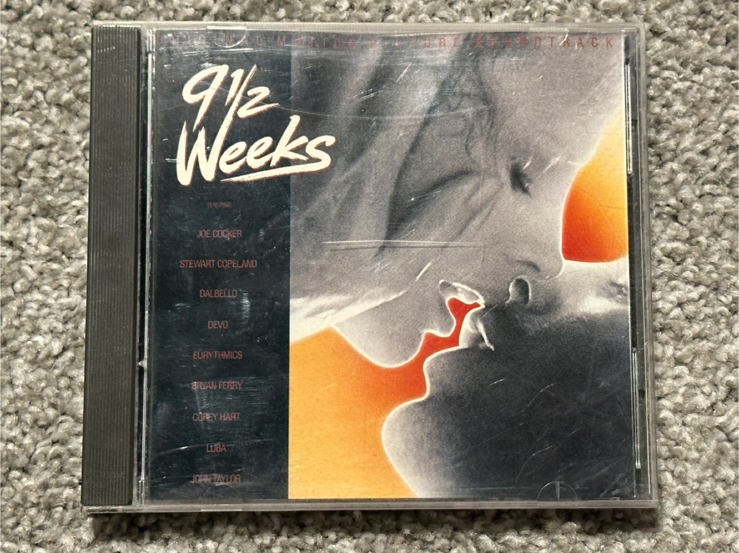 This is the "9 1/2 Weeks" soundtrack CD. It features artists like Joe Cocker, Eurythmics, and Corey Hart. A great addition for any movie soundtrack collector!