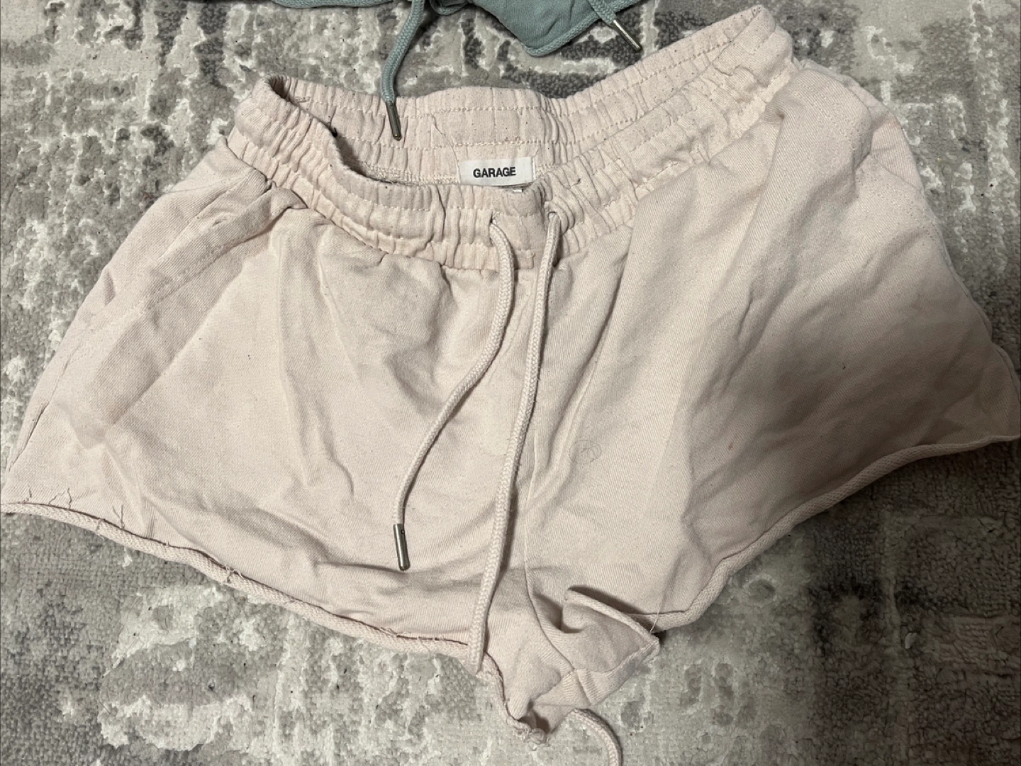 Selling a couple pairs of Garage shorts. One pair is a light pink/beige colour and the other is a light green/blue colour. Both are a size small and in good condition!