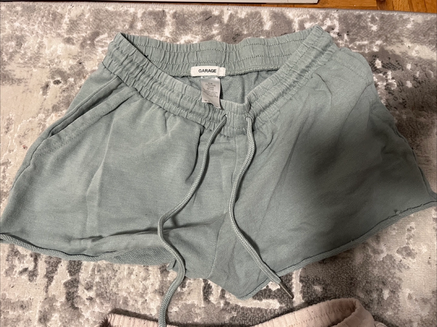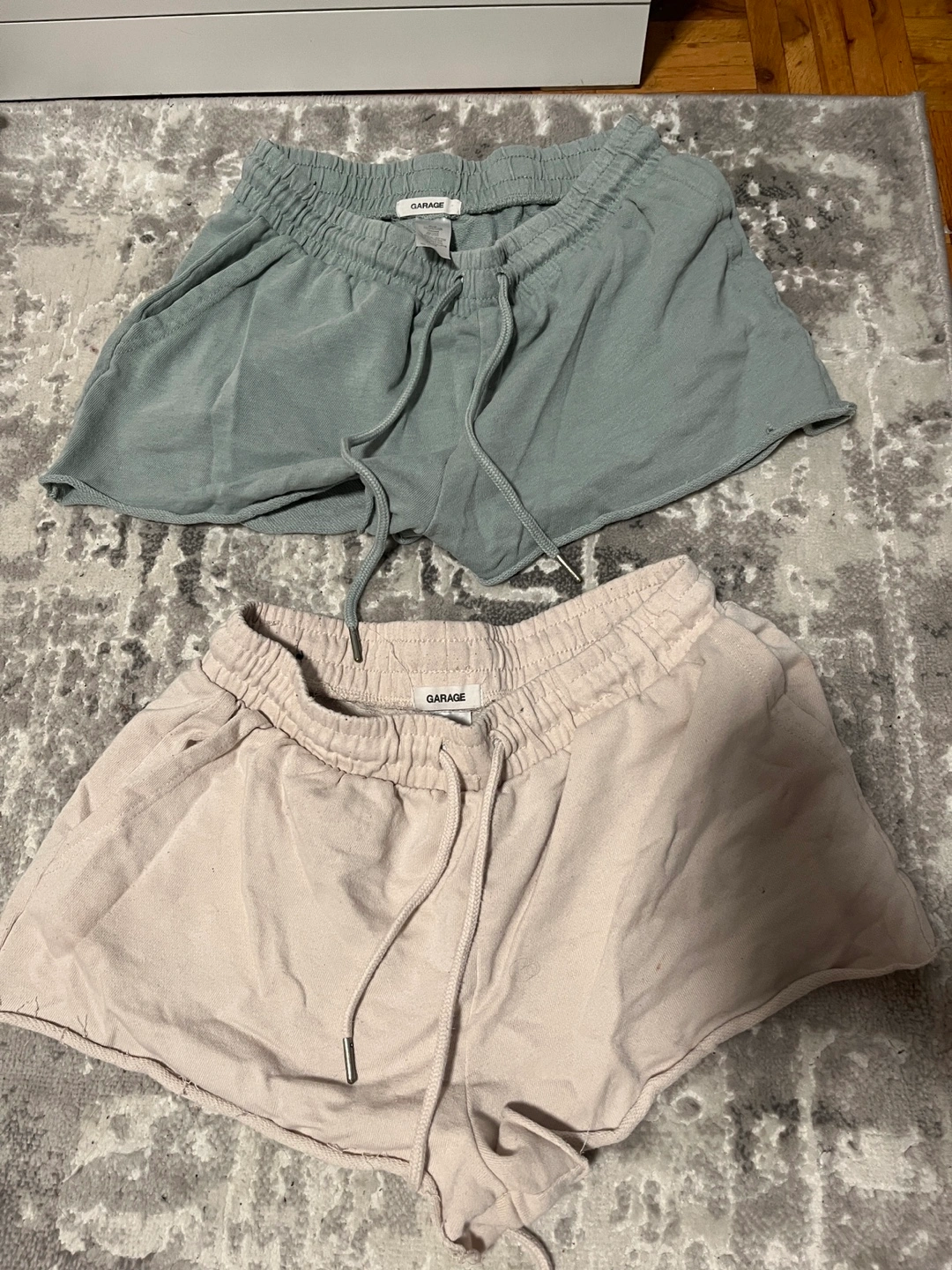Selling a couple pairs of Garage shorts. One pair is a light pink/beige colour and the other is a light green/blue colour. Both are a size small and in good condition!