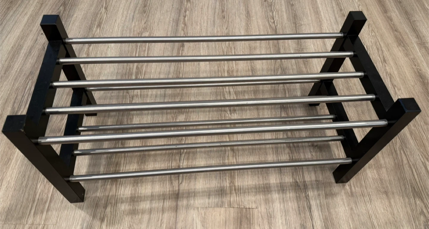 Selling a shoe rack with a black frame and silver bars. It's in great shape and ready to organize your footwear! $20 each