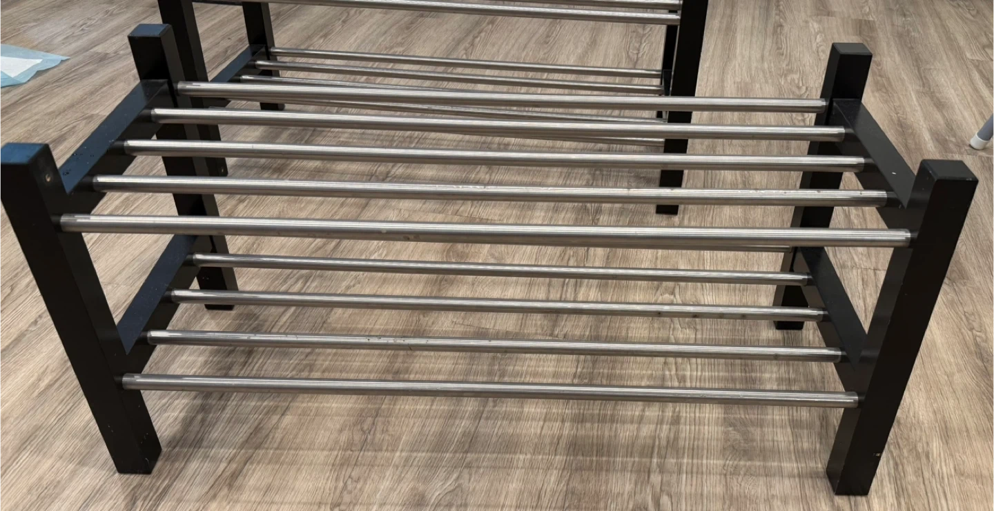 Selling a shoe rack with a black frame and silver bars. It's in great shape and ready to organize your footwear! $20 each