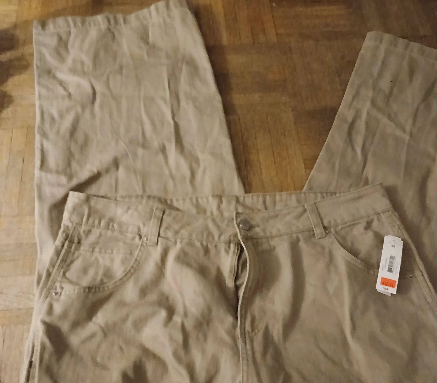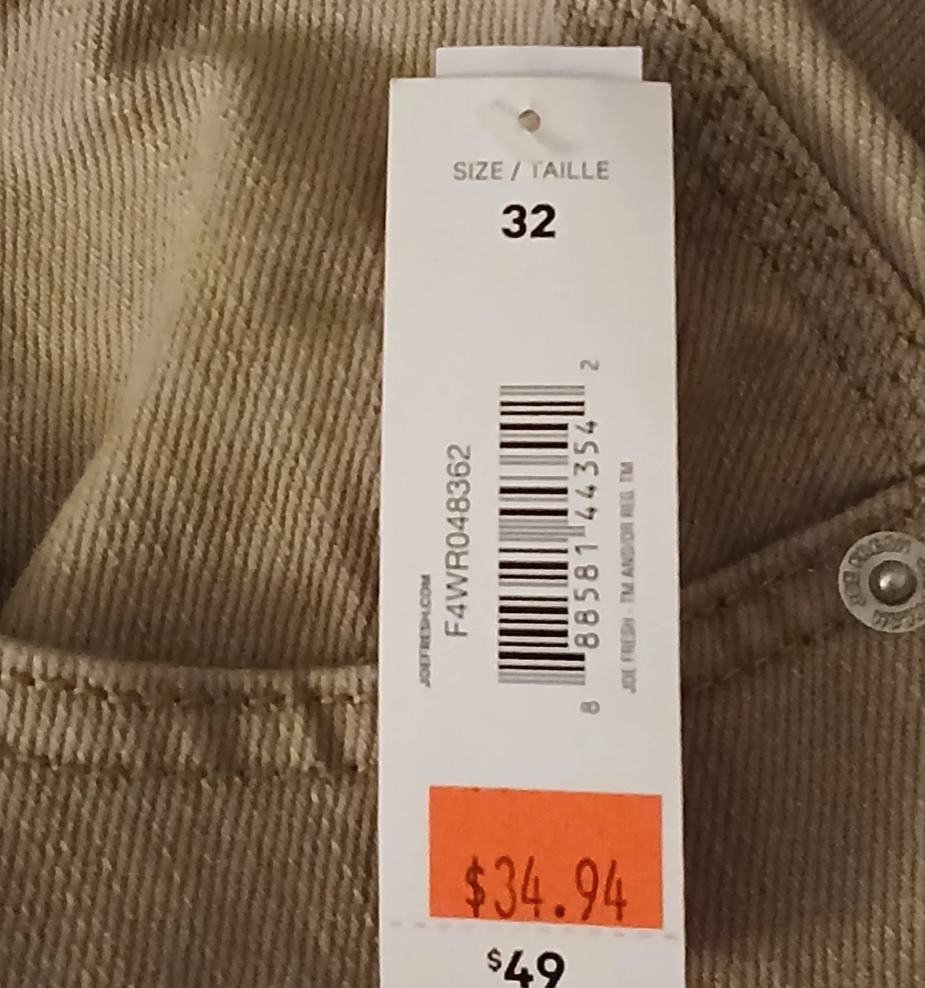 Brand new Joe Fresh khaki pants in size 32. These pants are made of a durable fabric with a comfortable fit. They feature a classic five-pocket design. A great choice for casual wear!