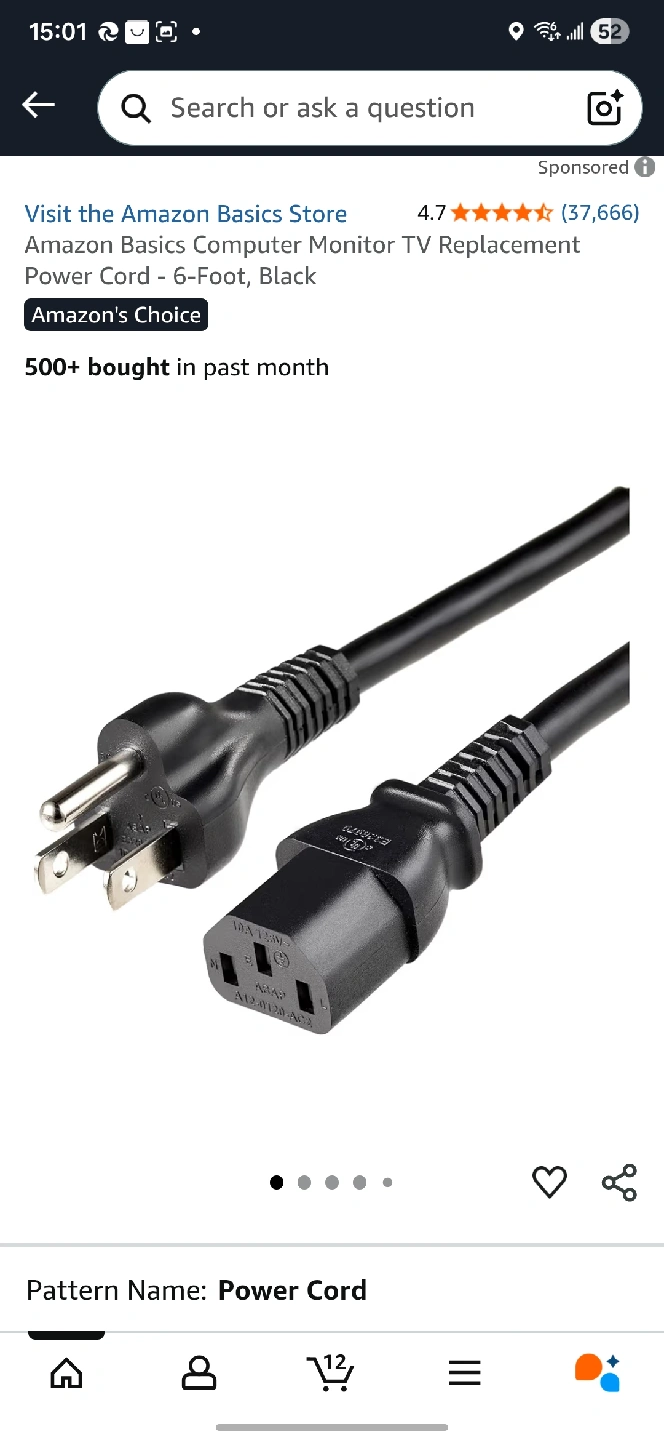 Selling a 3ft computer power cord from Amazon Basics. It's black and in great condition. Perfect for your computer or other electronic devices!