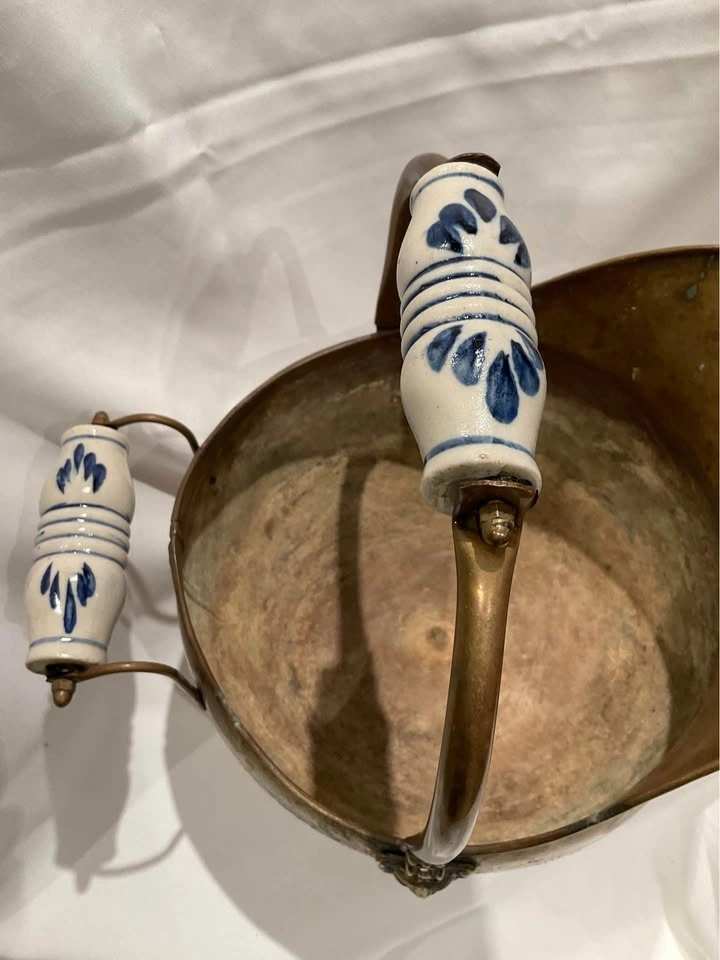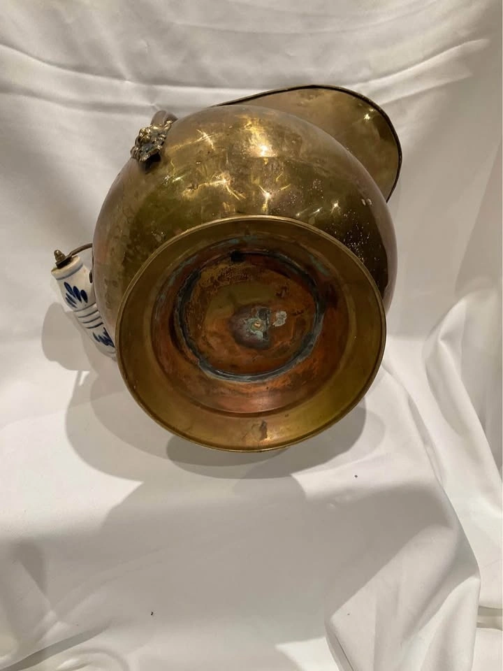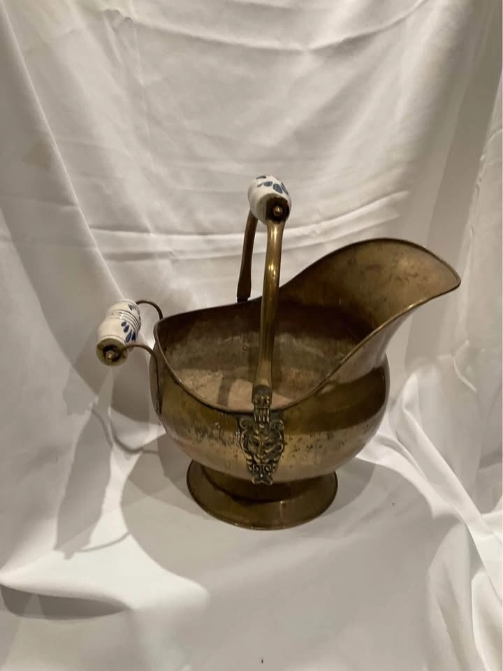 Copper & Brass Scuttle. Height with handle 14”, Base 7”. Good condition, left in original condition with natural patina - has not been cleaned. Smoke & pet free home. #266/800. Cash Only / Richmond Hill / Bathurst & King Rd.