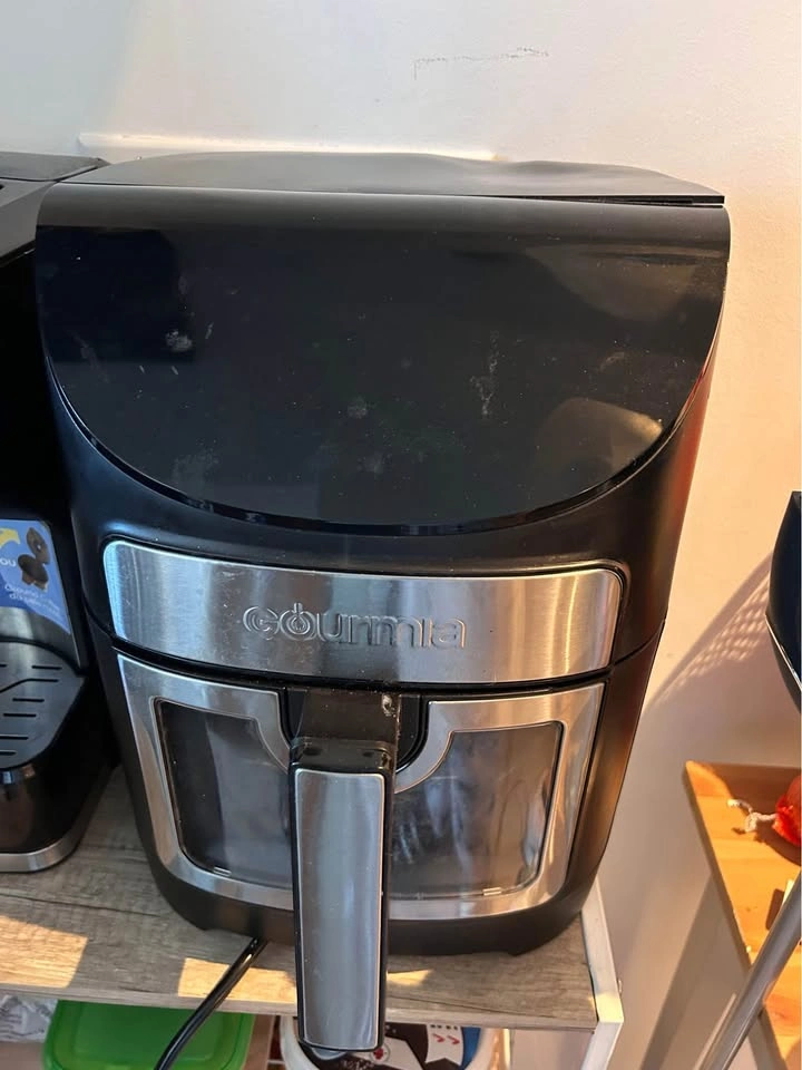 Selling a Gourmia air fryer in good condition. It's black and silver, and has a digital display with different cooking options. Great for making quick and easy meals!