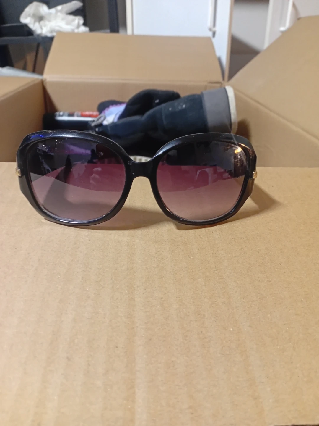 Black Oversized Sunglasses with Gold Accents