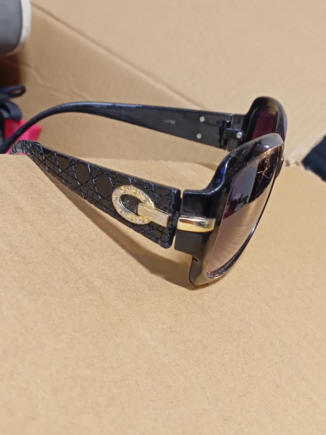 Black Oversized Sunglasses with Gold Accents