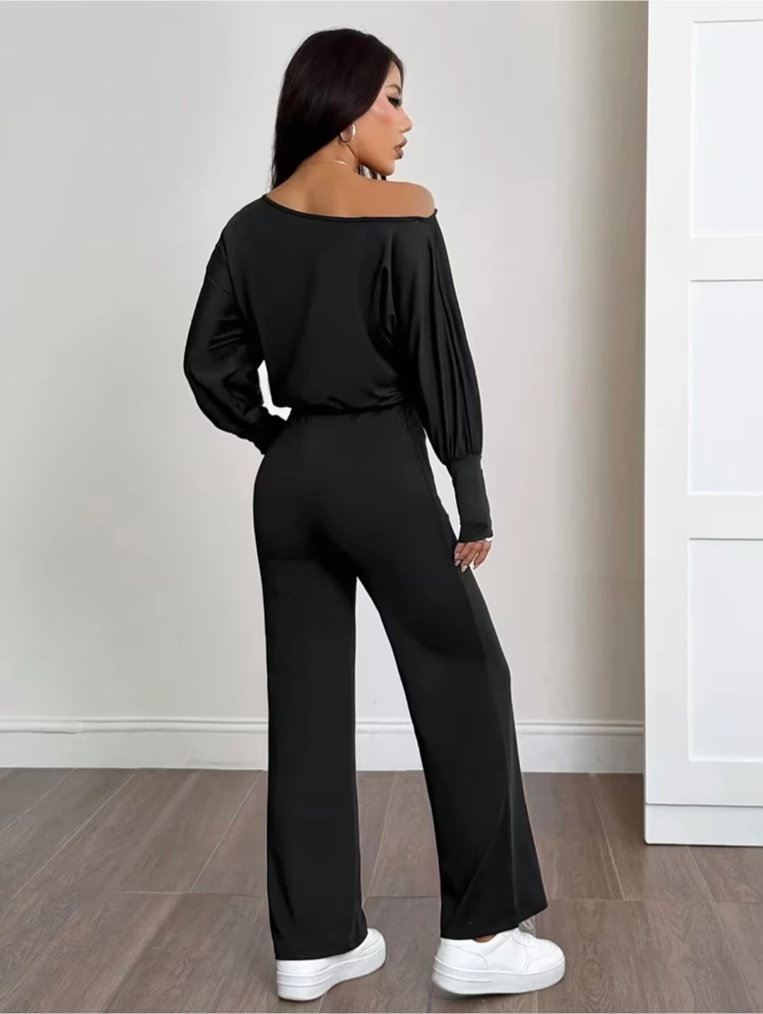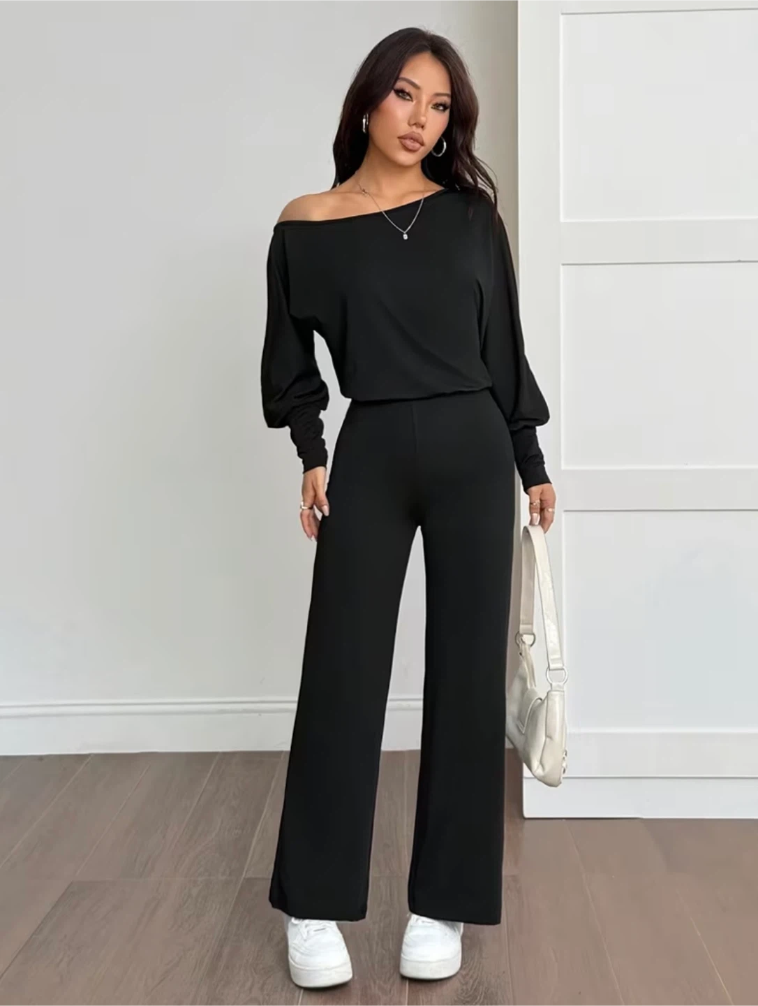 New Two-Piece Set with Asymmetrical Shoulder Top And Long Pants