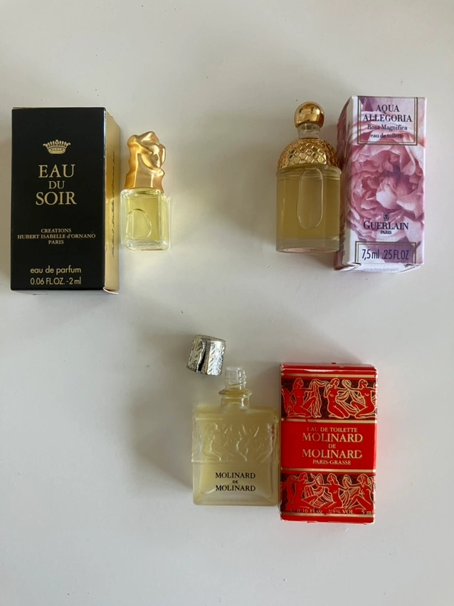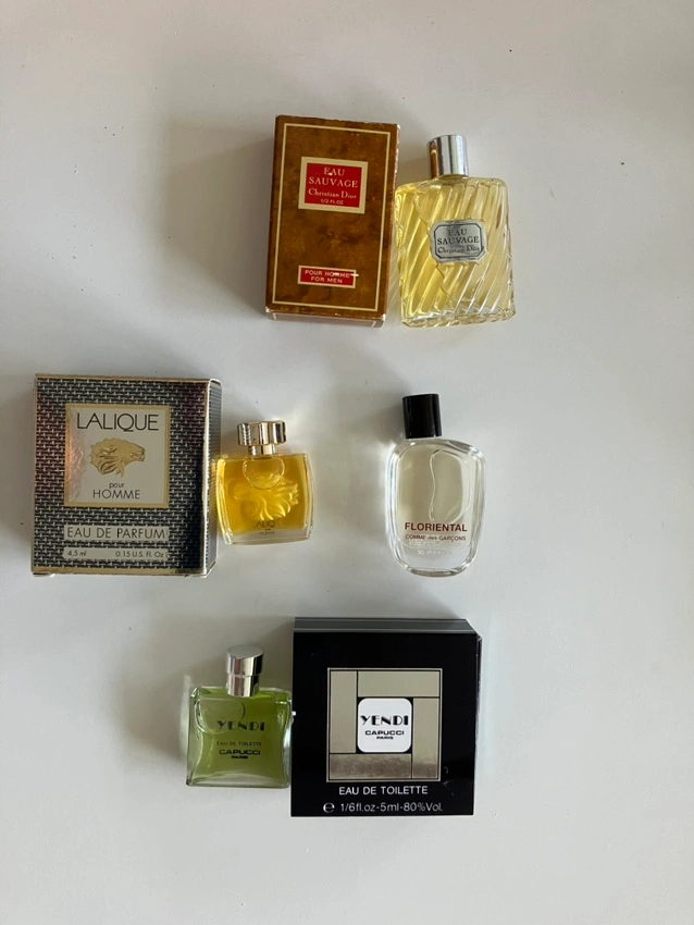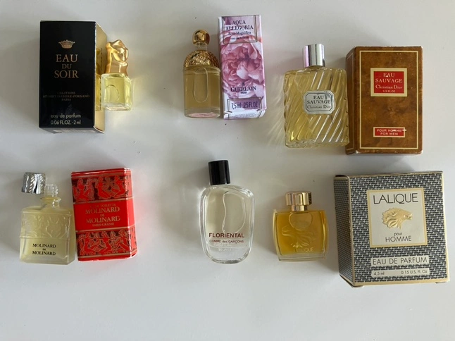 144A set of 7 perfume miniatures. All bottles are approximately 4-7 ml in size. Includes brands such as Dior, Sisley, Lalique, Guerlain, and Molinard. Most of them full, except for Molinard. It is around half of full and has a broken cap, still has inner cap, that protect perfume from spilling. $25 for the set. Tuesday, Wednesday and Friday can meet downtown (Yonge and King), weekends - Main St and Danforth.