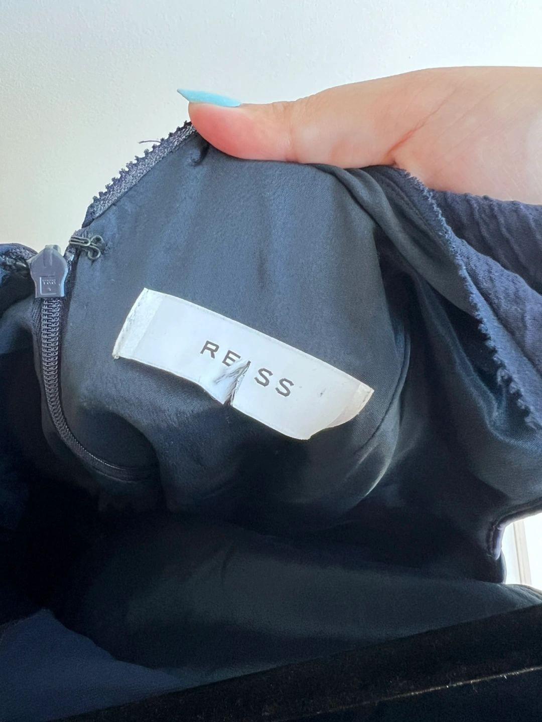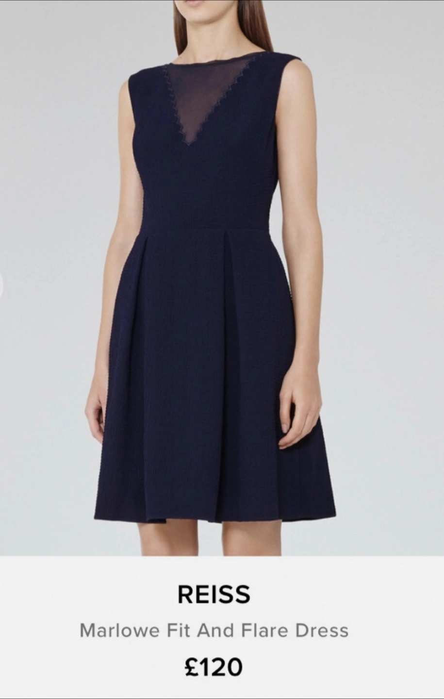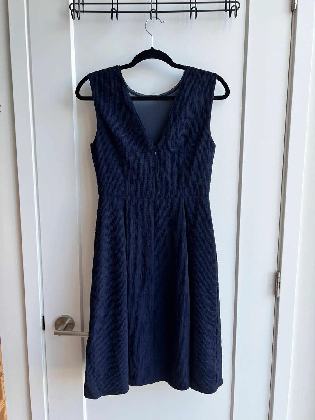 Originally my mom’s but it doesn’t fit her anymore and me neither! There’s no size on the label, but the waist measurement is 28 inches. The V neckline is sheer.