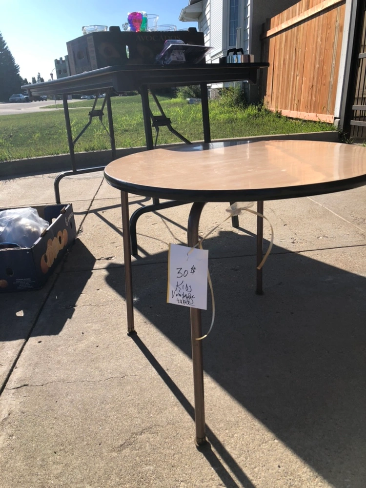 It’s an exact shrunken replica of an adult’s size round kitchenette table