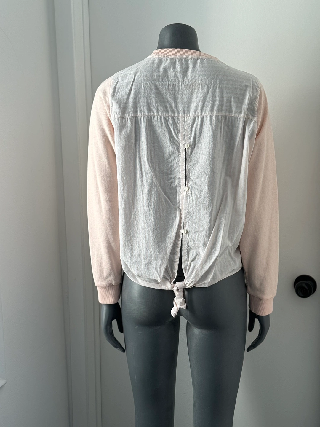 A soft and comfortable pink J. Crew sweatshirt with a tie back detail. It has long sleeves and a relaxed fit. NWOT.