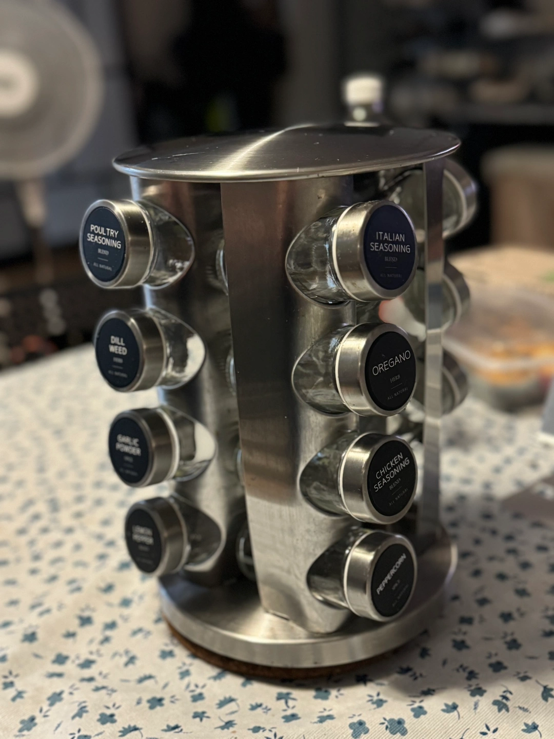 There is little rust because it has been kept in the cabinet and it is missing one jar.