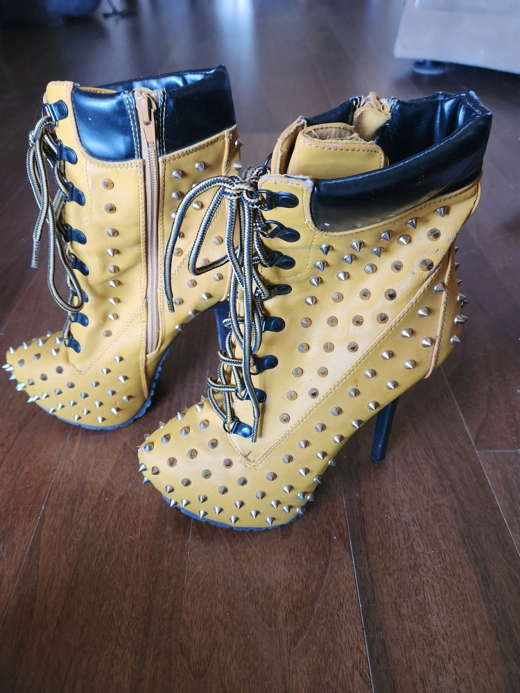 318These are a great pair of boots with a unique look. They are size 7.5. Only worn a handful of times. Please take a look at the photos, and if you have any questions, let me know. Halloween is just around the corner!