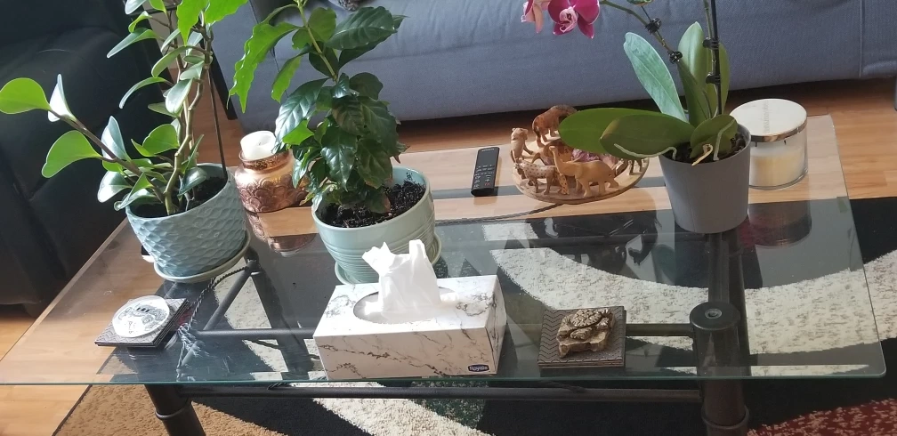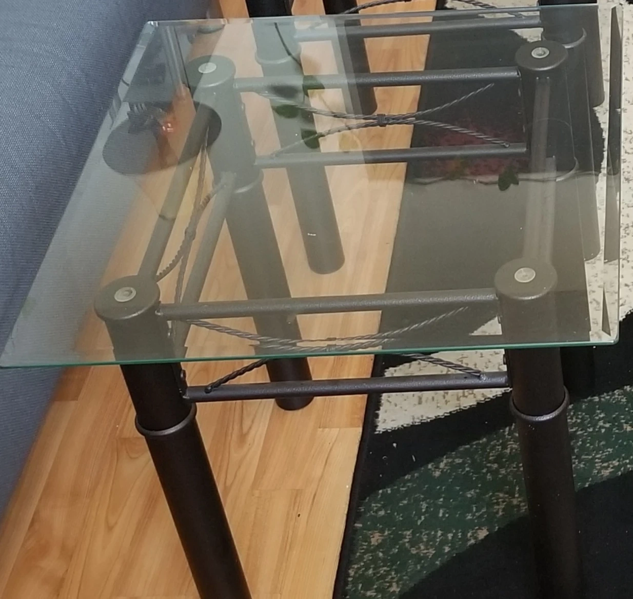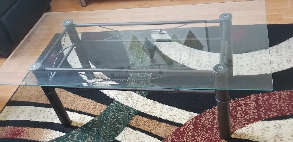 Glass rectangular coffer table and one (1) glass square side table . Both in great condition