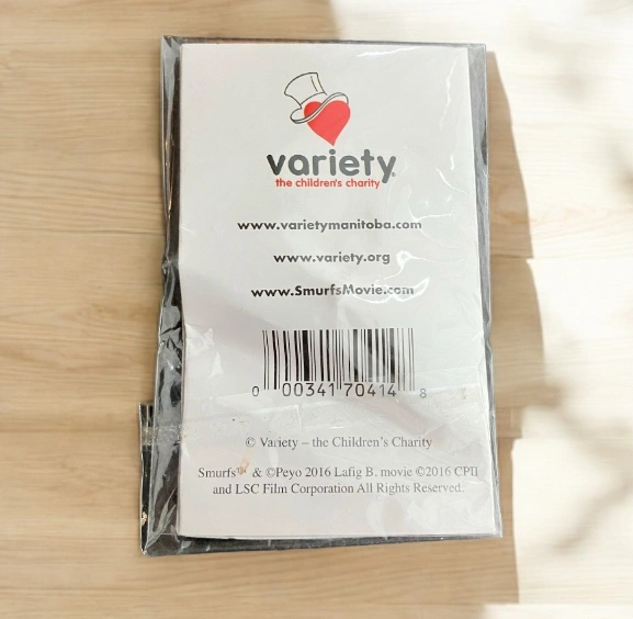 NEW in original packaging. Variety Heart Manitoba, the children's charity, gold heart Smurfette collector pin.