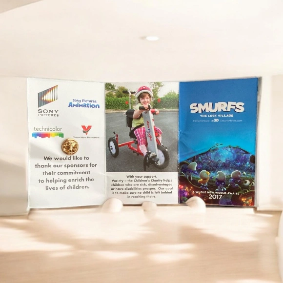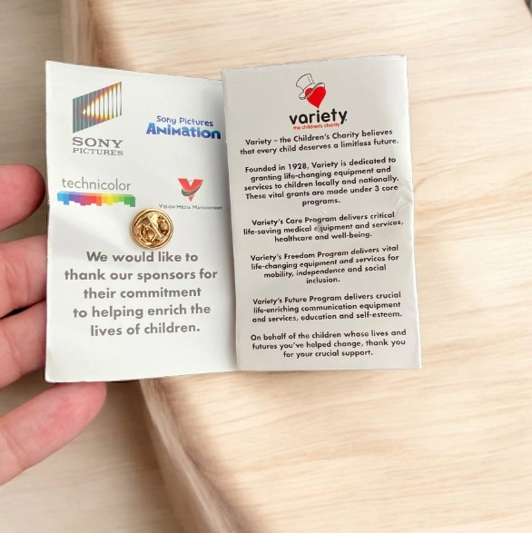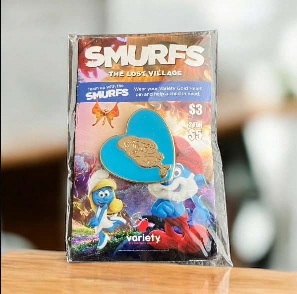 Wear your Variety Gold Heart pin and show support for the Variety Heart Club. Gold Smurfette sits in the middle of a blue heart. This pin is from the 2016 campaign.