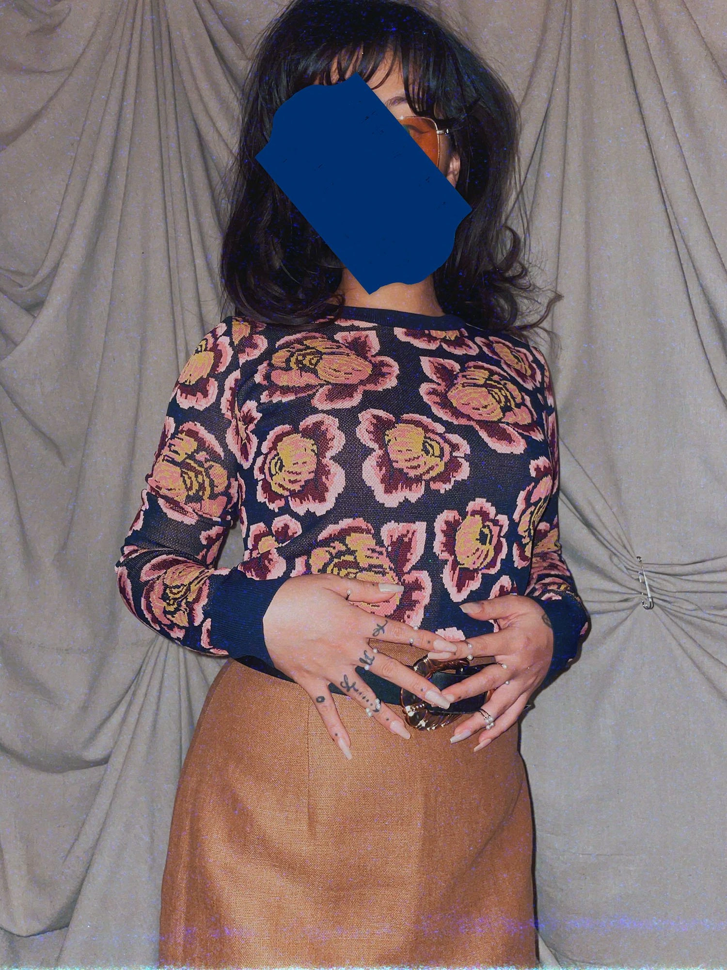 blue pink floral crewneck knit sweater long sleeve shirt