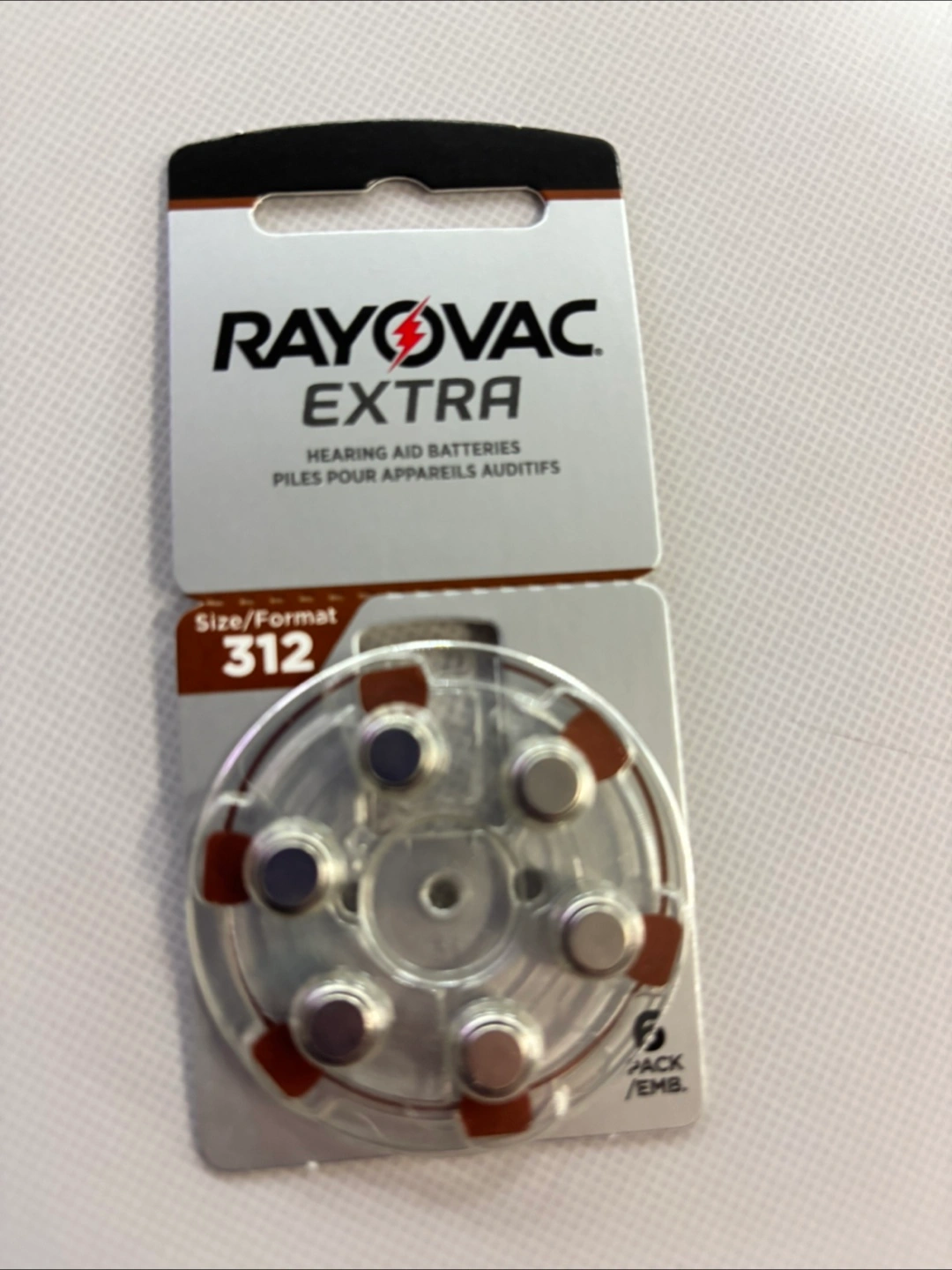 Selling a pack of Rayovac Extra hearing aid batteries, size 312. These are hearing aid batteries.