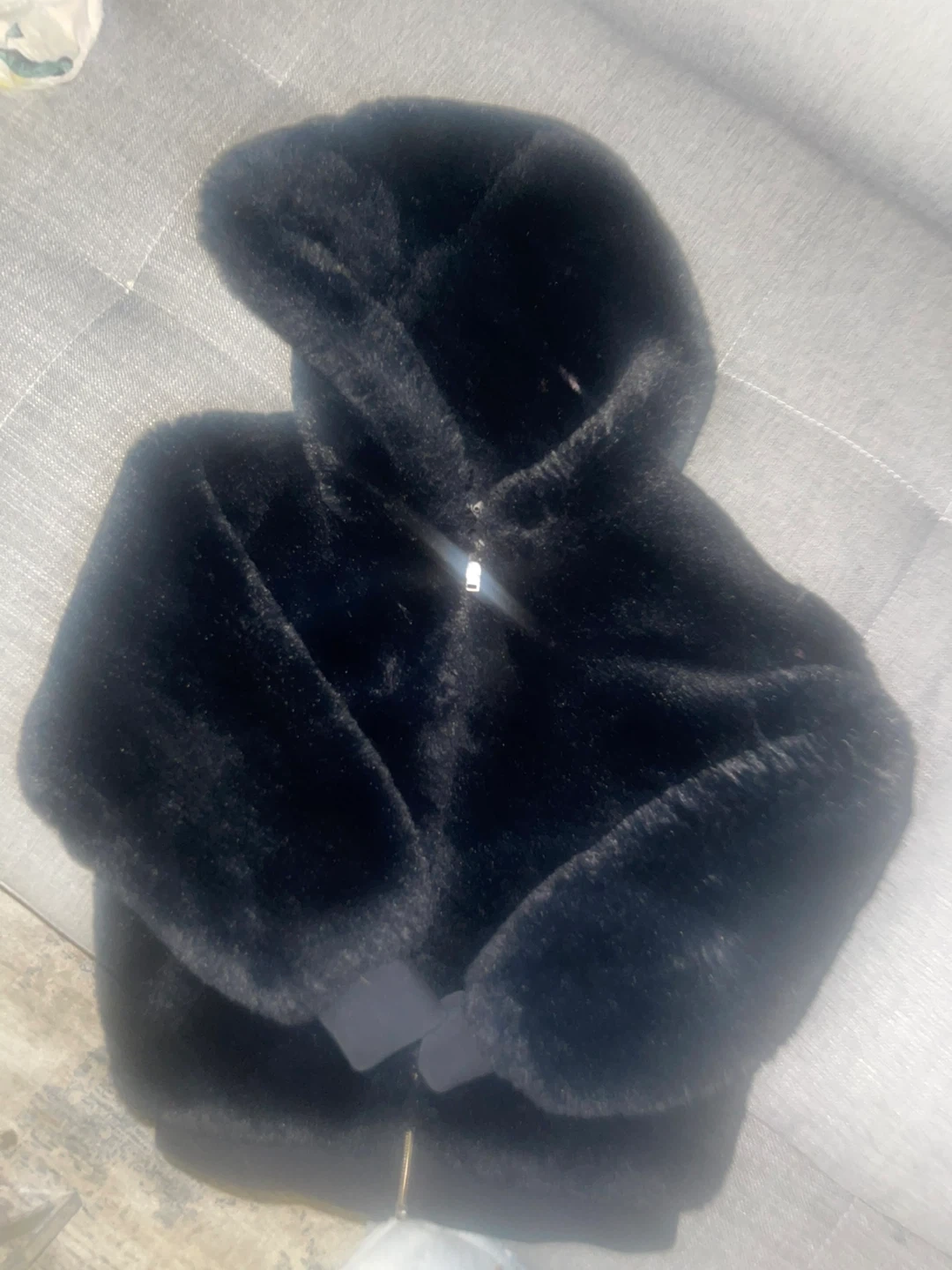 Moose Knuckles Black Fur Hooded Jacket S/P kids girls bunny