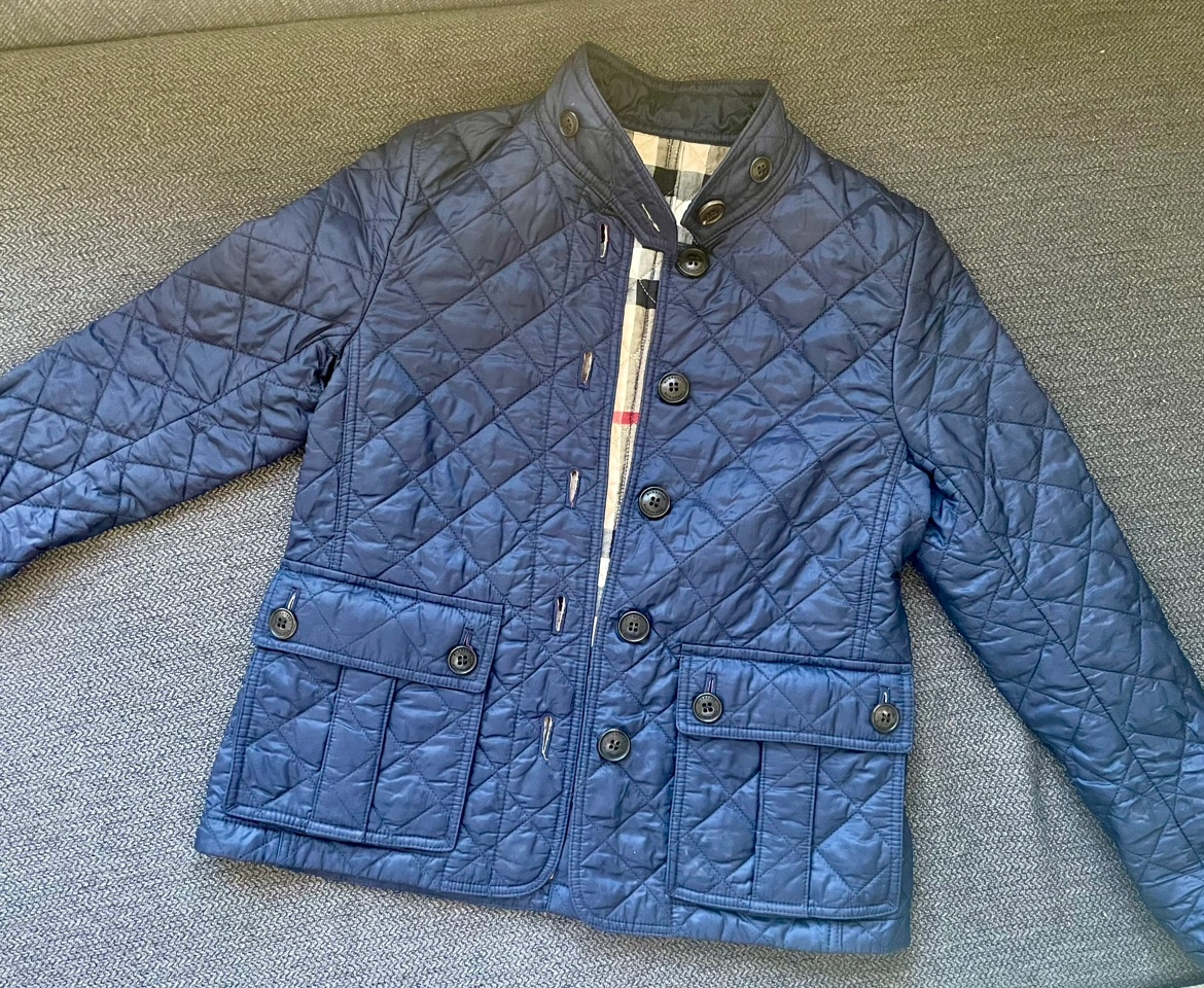 Burberry authentic jacket with a checkered lining. The jacket has a stand up collar and button closure. It has two front pockets. The jacket is in very good condition, no spots or imperfections. Size 128 cm, 8 y.o.