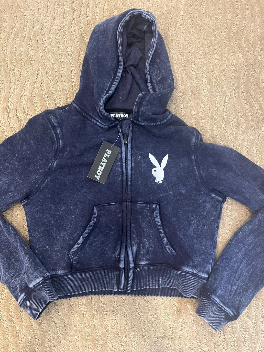Blue Playboy zip up hoodie with a white bunny logo on the front - 14/16 or ladies XS This is brand new with TAGS Price is FIRM. It's a youth LARGE, fits GIRLS size 14/16, the sleeves seem quite long. May fit a ladies XS. All my items are from a smoke free home. If my ADS are up, it’s for sale still Local Sales preferred Buyer responsible for prompt Pickup NW - FCFS Final Sales, no returns or refunds Cash or EMT only