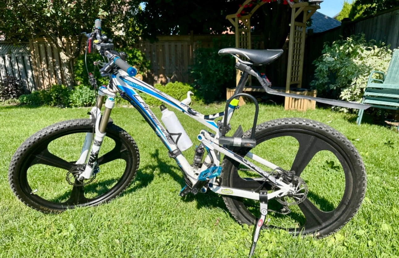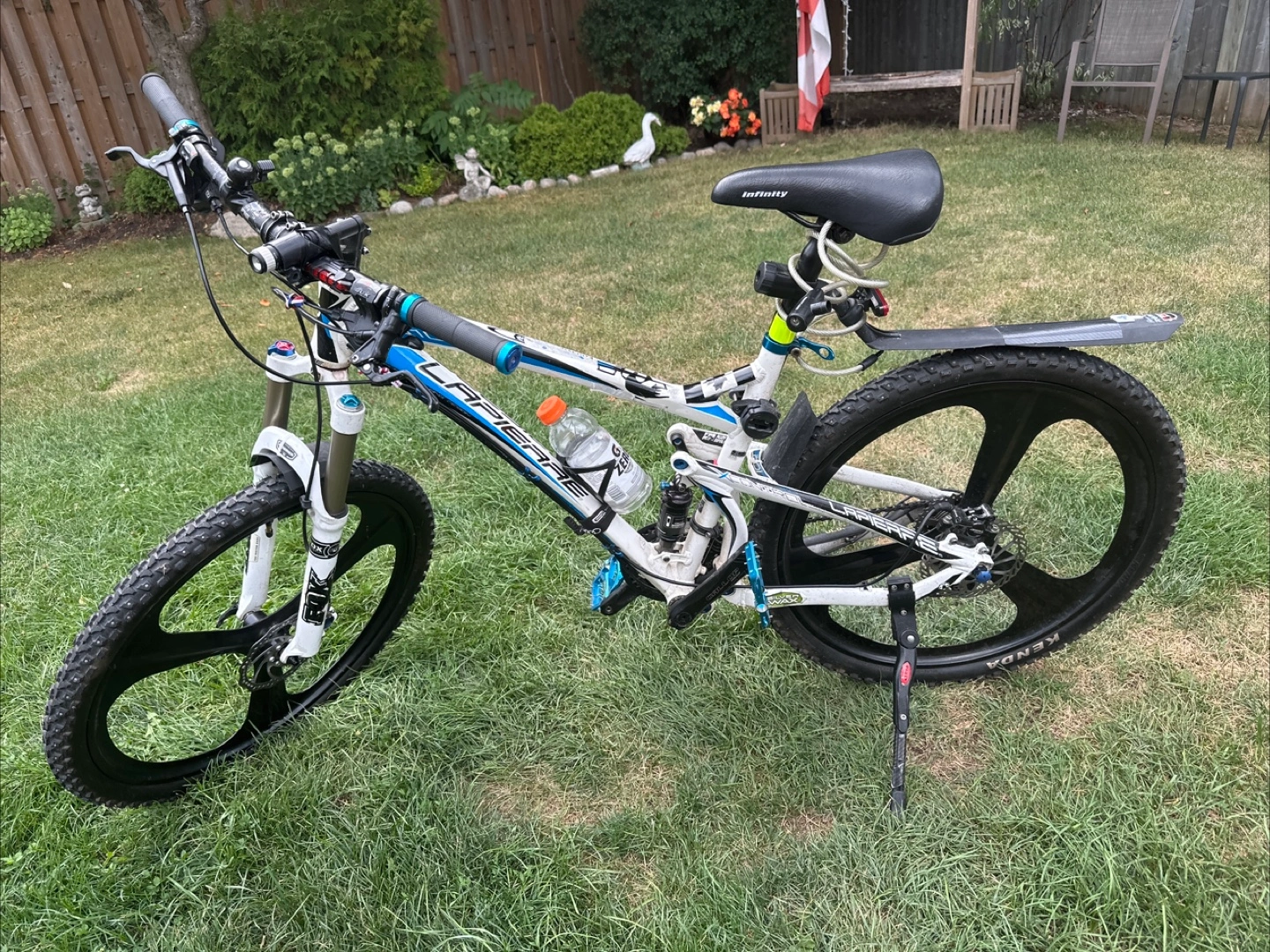Lapierre’s X-Control 310 delivers a light, lively and fun ride. 26 tires/tims and medium frame . The 310 is the top model. On the face of it, it's a slightly peculiar proposition, with travel, cockpit and geometry numbers that look like they belong to two or three different bikes. But everything comes together on the trail. Full adjustable suspension , 32 F Series Fox Shocks , Shimano Deore XT derailleur, SLX shifter , with an Infinity seat, titanium rims , Kendal tires, aluminum pedals, Ergon Mountain GE1 Evo Slim Grips , etc. Last pic is the bike currently as of August 2025 . Original stock retail price $3,000.00 Euros plus VAT.