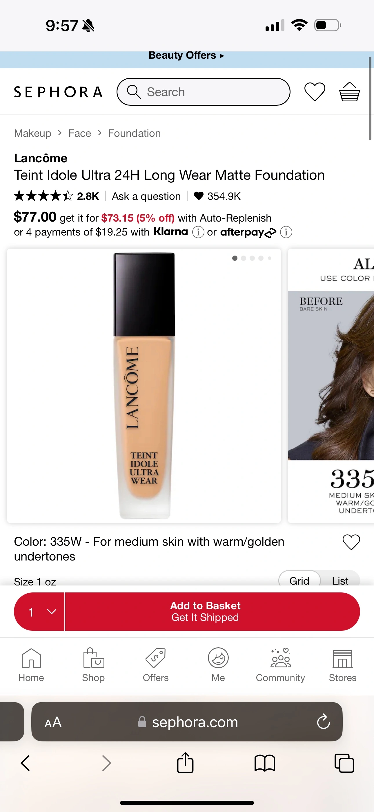 38Two new, full-size Lancôme Teint Idole Ultra Wear foundations. $40 each Retails $77+tax Color shade - 335W