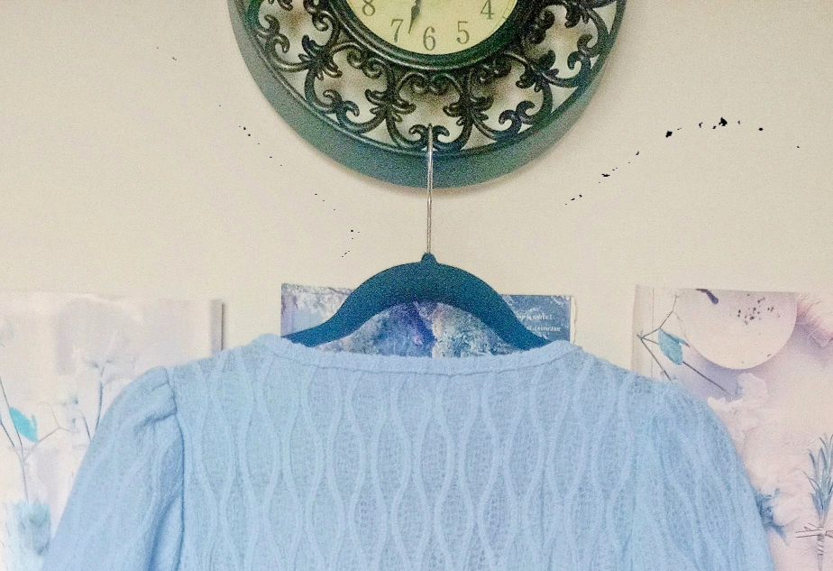 Baby blue colour. very flattering