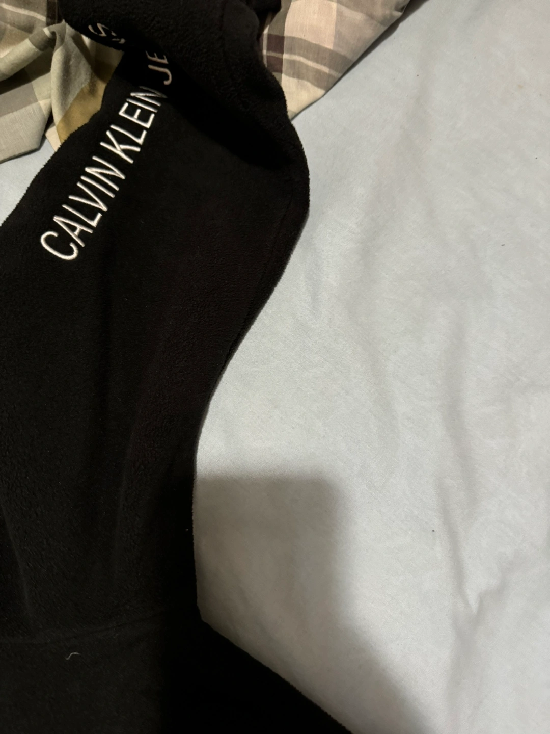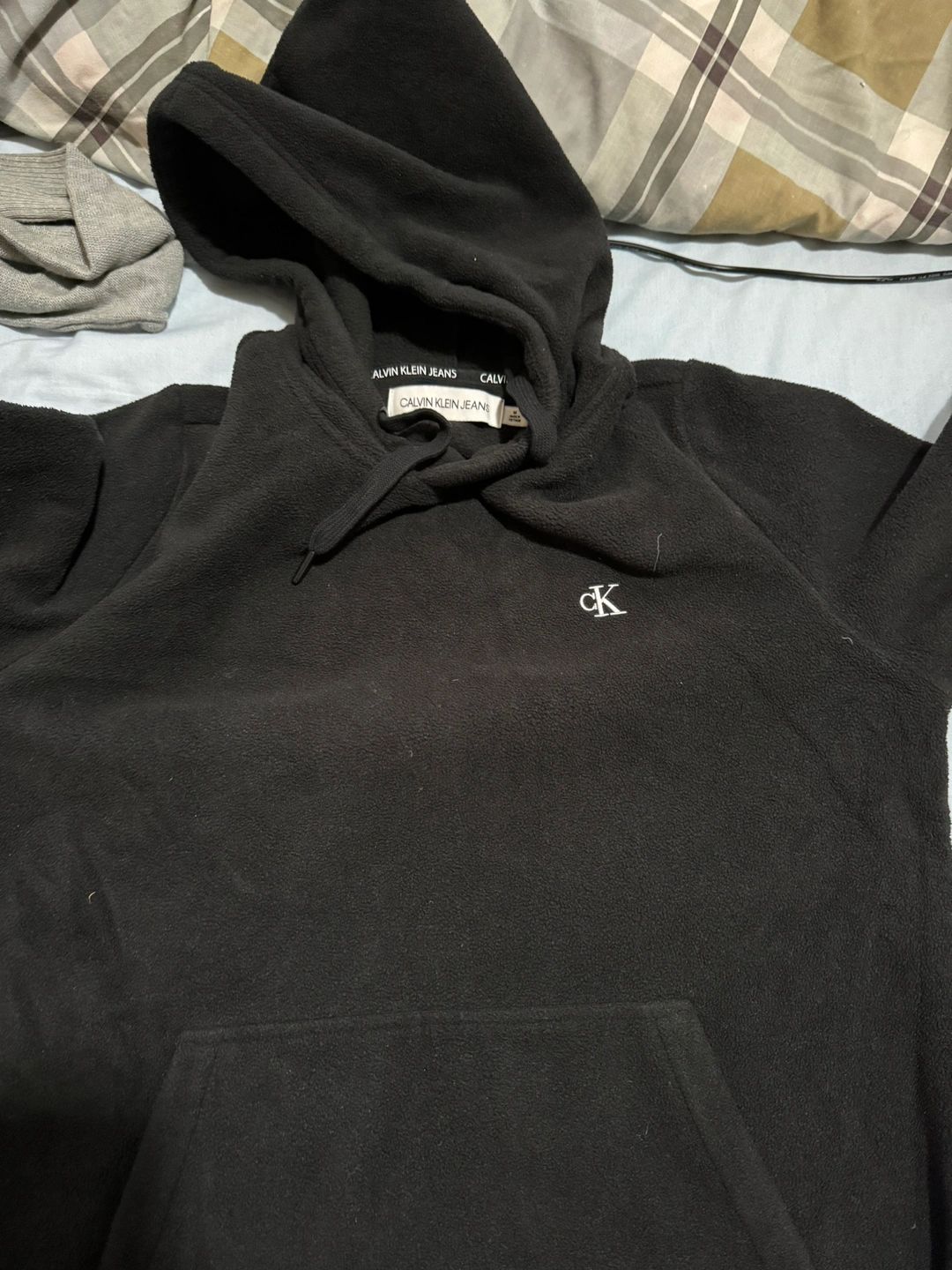 Black Calvin Klein Jeans hoodie with a CK logo on the front and the Calvin Klein Jeans logo down the left arm.