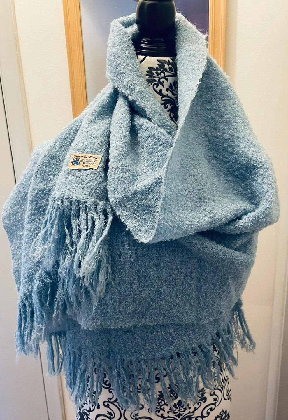 Blue wool scarf with fringe. Hand woven. Made in Canada. 100% Pure Wool.