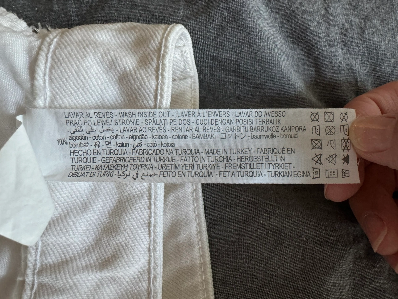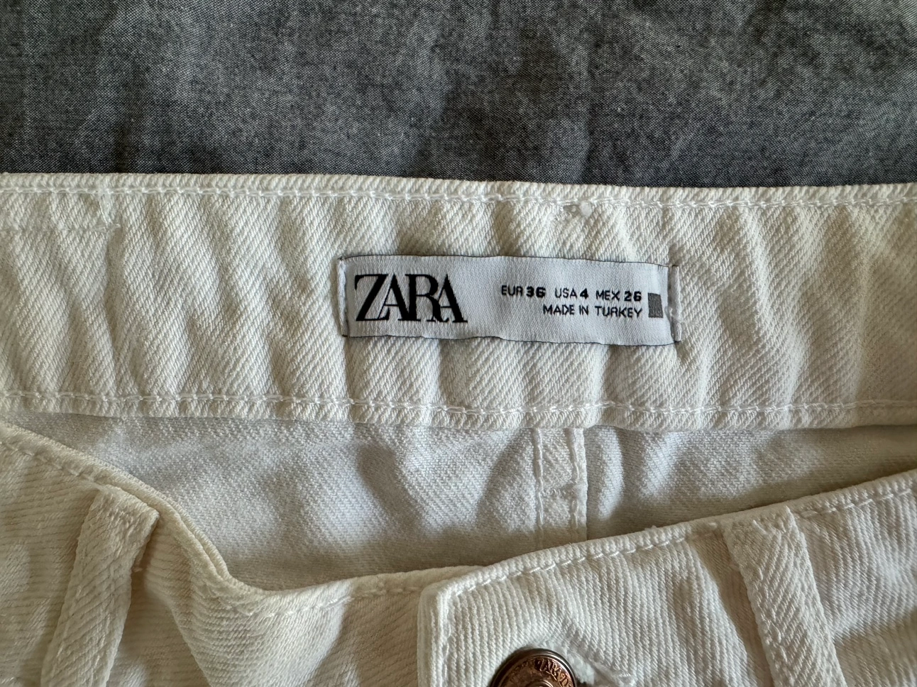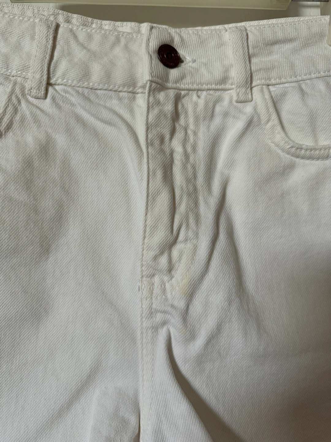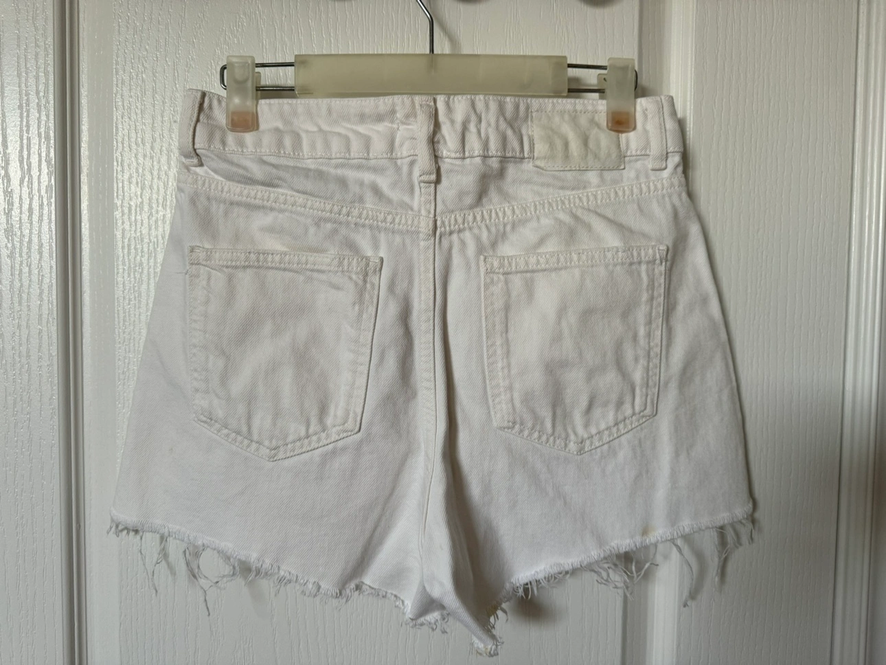140Pick up at 16th Ave & Kennedy Zara. High waisted, distressed denim shorts. These shorts have a button and zipper closure. The waist is approximately 34" and the inseam is approximately 3". Size seam 30”. Please note that the shorts are not new and have 2 stains (Bleach could remove the stains).