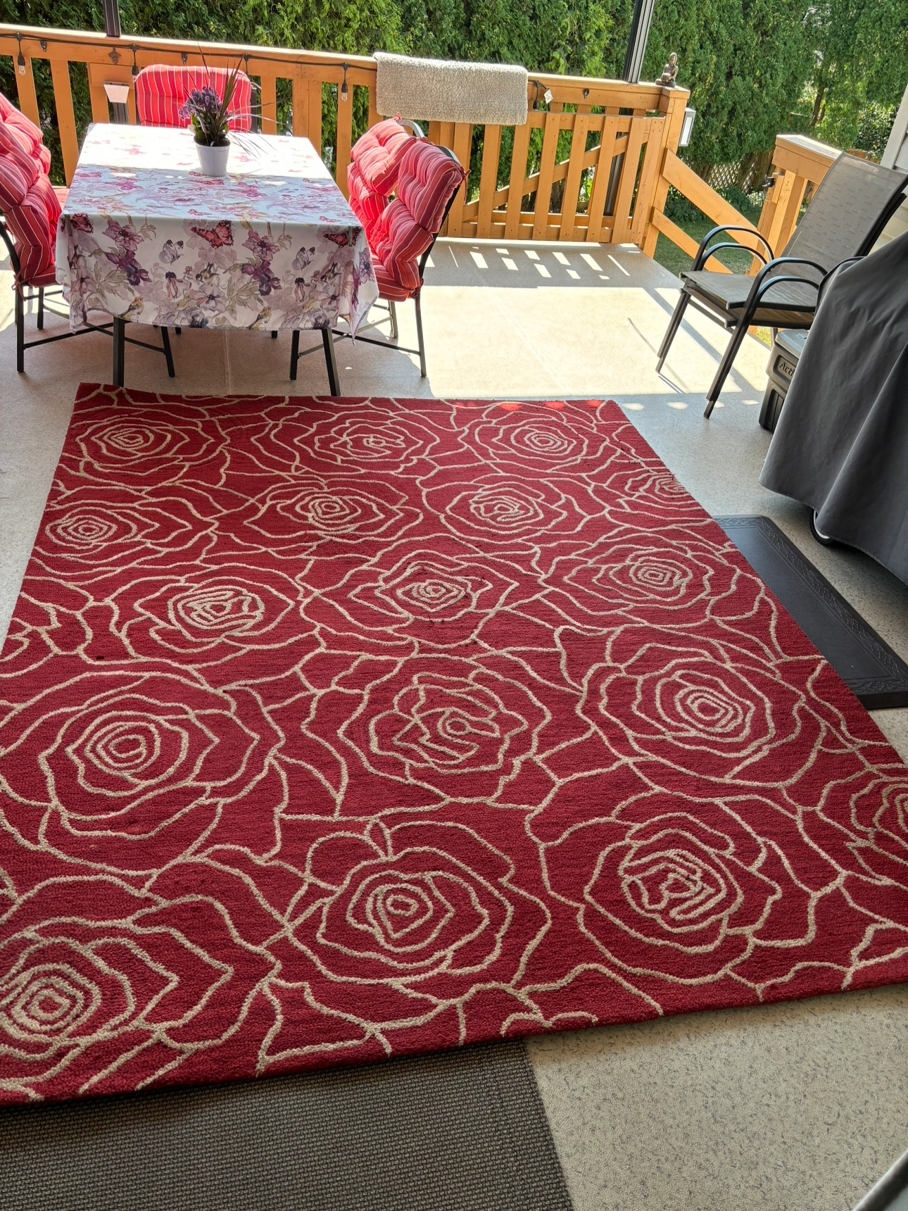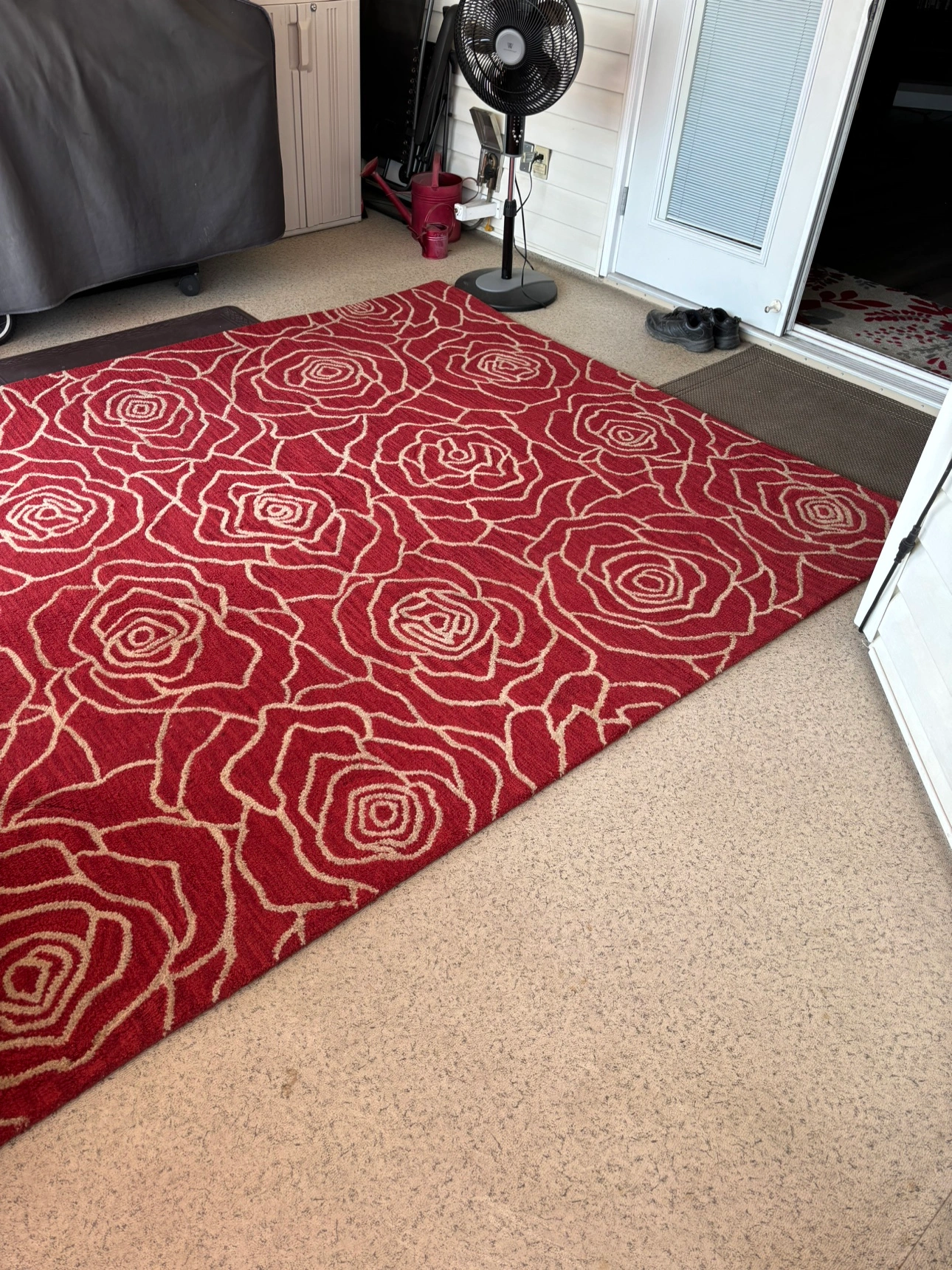 Buy & SellRed Rose Area RugRed Rose Area Rug$25Hand tufted area rug with a rose pattern in red and cream. The rug is made of 100% wool and measures 7'6" x 9'6".ConditionGoodDimensions7’6” x 9’6”WHERE TO MEETCloverdaleView MapSELLERverifiedChrisCloverdale650 reviews3 chats·0 favorites·26 viewsSEND CHAT TO SELLERHi Chris! I’m interested in your listing.Hi Chris! I’m interested in your listing.Get the Karrot app to chatSign In to chat