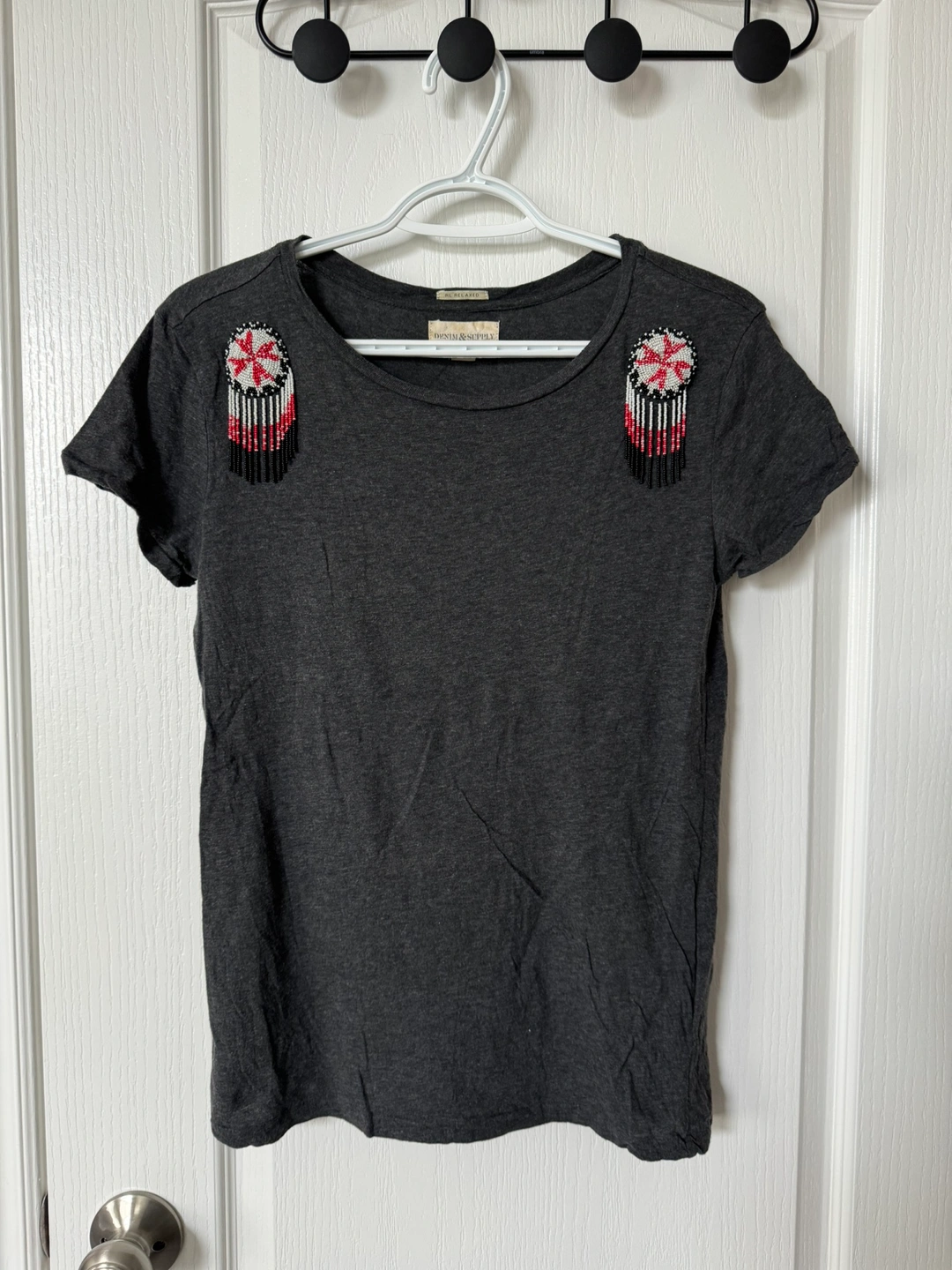 Ralph Lauren Denim & Supply Grey t-shirt with beaded embellishments on the shoulders.