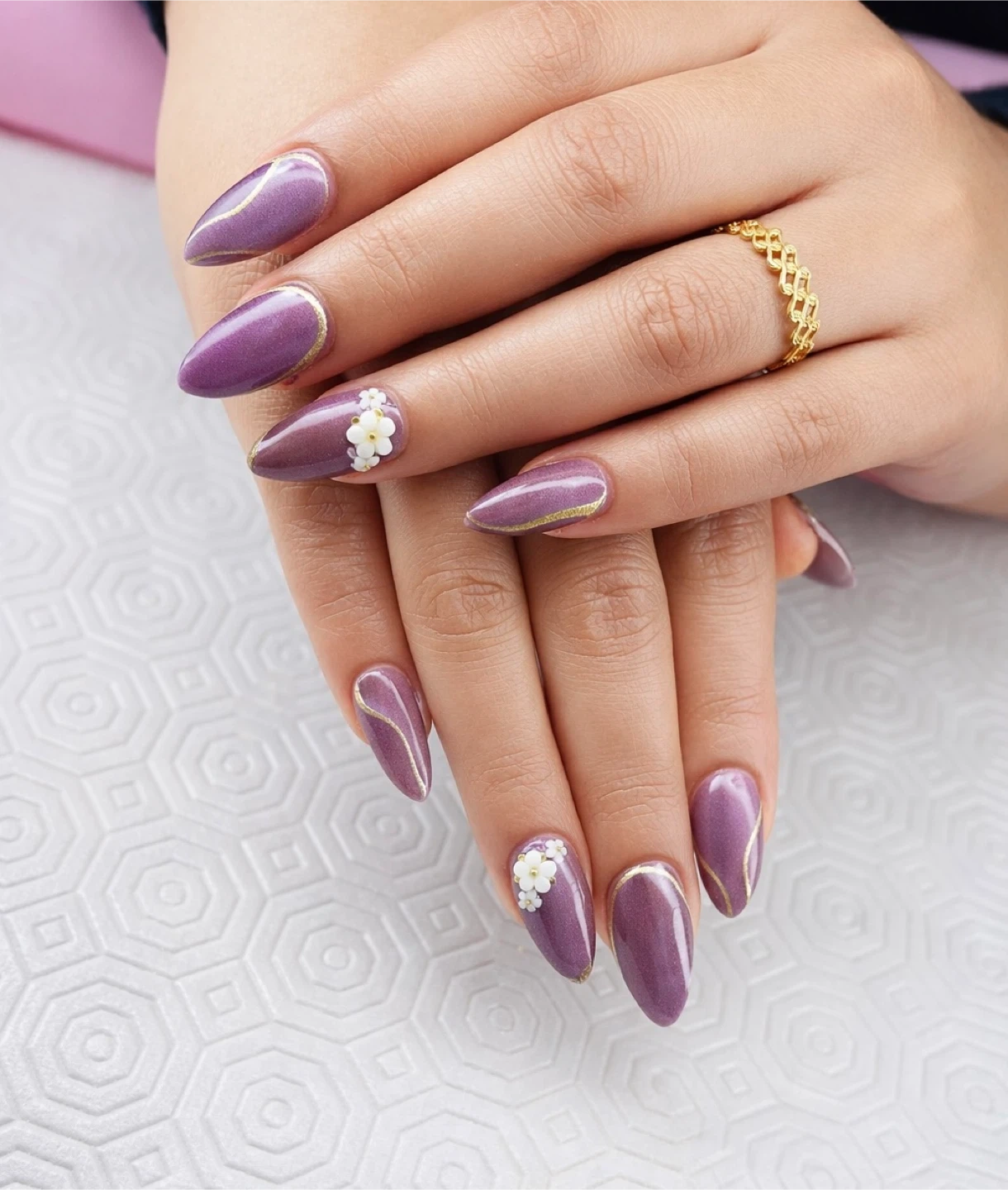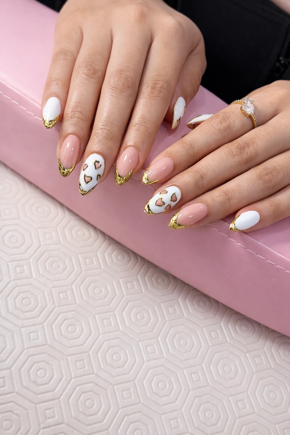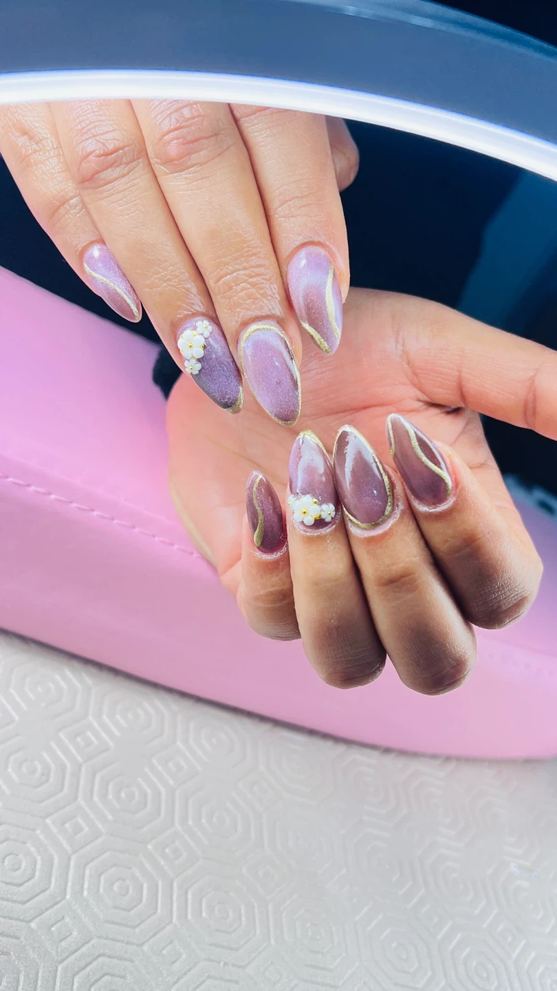Get gorgeous custom nail art! Choose from a variety of styles like French tips with gold accents, floral designs, or elegant solid colours. Professional quality for a stunning look.