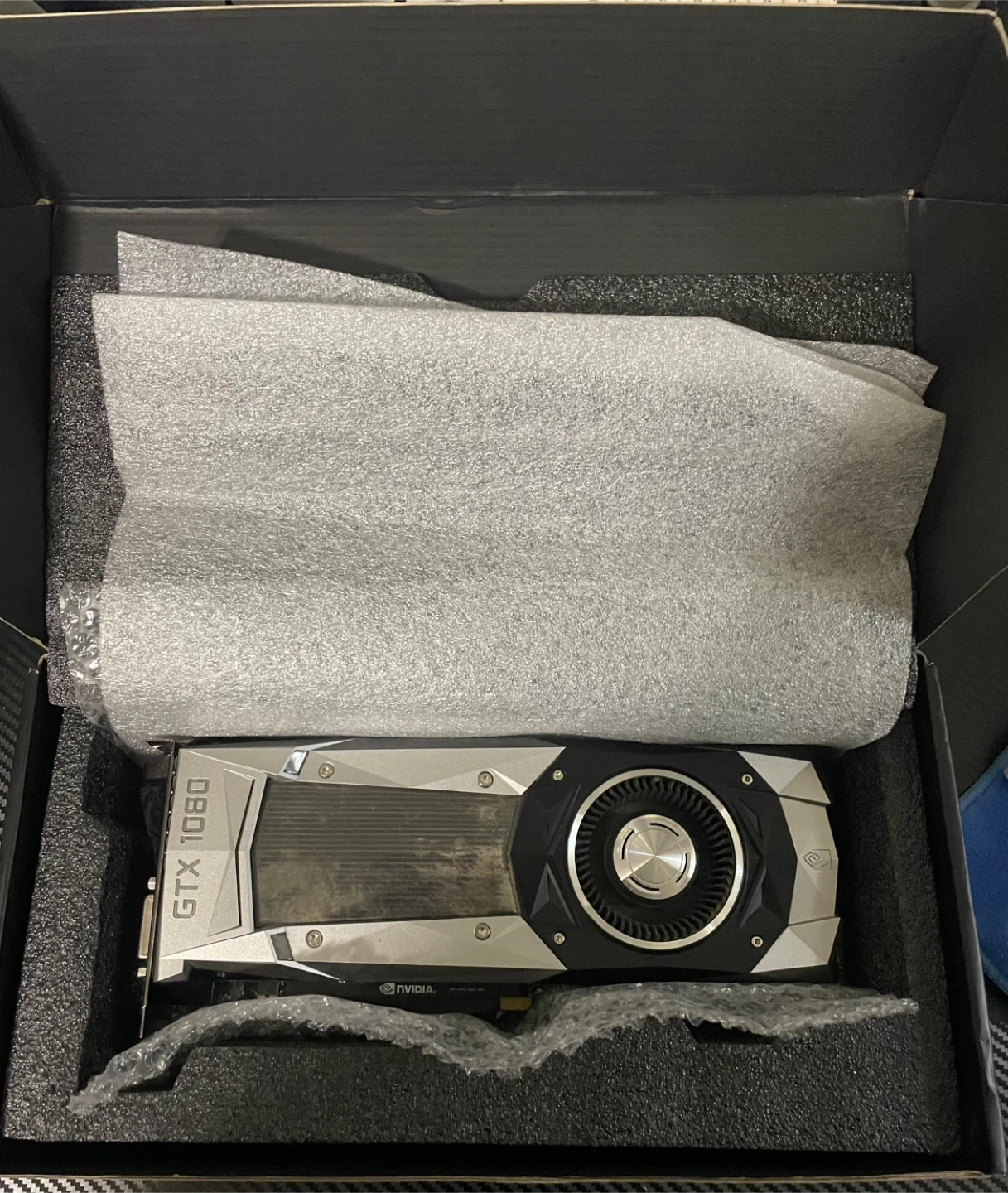 Selling a used NVIDIA GeForce GTX 1080 Founders Edition graphics card. It comes with the original box. Perfect for gaming or other graphics-intensive tasks!