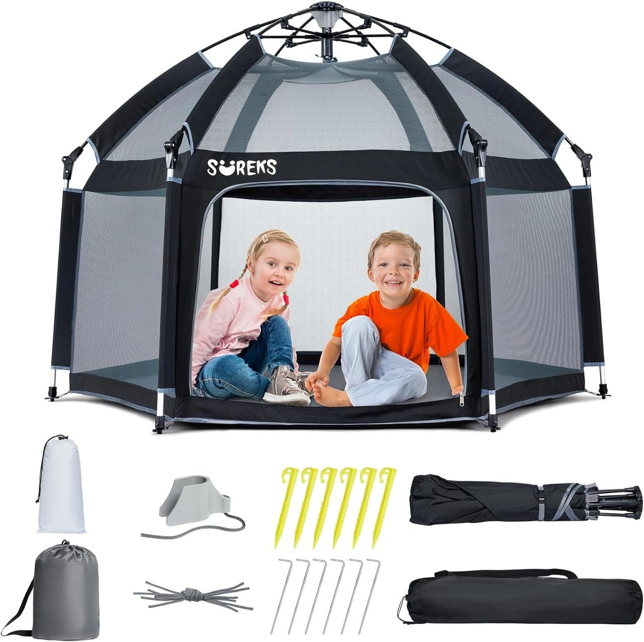 * New, factory sealed * Entrance can be fully closed * UPF50+ UV sun canopy * Breathable see-through mesh * 60" wide x 40" tall * For indoor and outdoor use * Includes a carry case * Easy to fold and unfold Current Amazon.ca price for this brand new Suureks Baby Playpen: $149.99. You get this brand new, never used item at a really good price and pickup for free. Bought it for a gift, but never got around to giving it. The item has never been opened, is factory sealed and brand new. Cash only. Pickup in Etobicoke or Mississauga: Email us to make arrangements. +++++ Suureks Baby Playpen - Foldable Playpen - Large Play Yard for Babies - Large Play Yard for Toddlers - Playpen with Gate - Indoor Playpen - Outdoor Playpen - Portable Play Pen - UPF50+ UV Sun Canopy - Sun Protection Playpen - Safety Locks - Sturdy Rails - Breathable Mesh - See-Through Mesh - Indoor & Outdoor Use - Parental Supervision - Perfect Gift for New Parents - Baby Shower Gift - First-Time Parents - Peace of Mind - Playtime Safety - Spacious Playpen - 60"(W) x 40"(H) - Room for Rolling - Room for Strolling - Building a Ball Pit - Play with Buddies - Easy Assembly - Lightweight Playpen - Compact Playpen - Easy to Assemble - Travel Bag Included - Portable Baby Playpen - Portable Toddler Playpen - Baby Play Yard