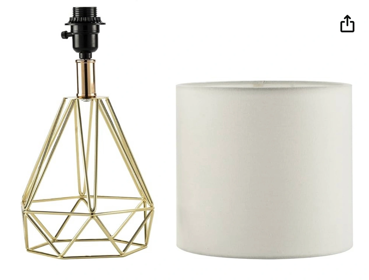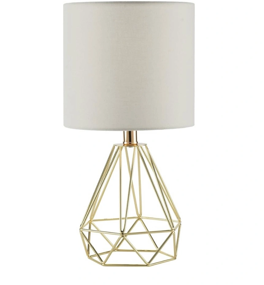 Brand New in box, Reinforced Geometric Wire Cage Table Lamp w/Gold Hollowed Out Base.