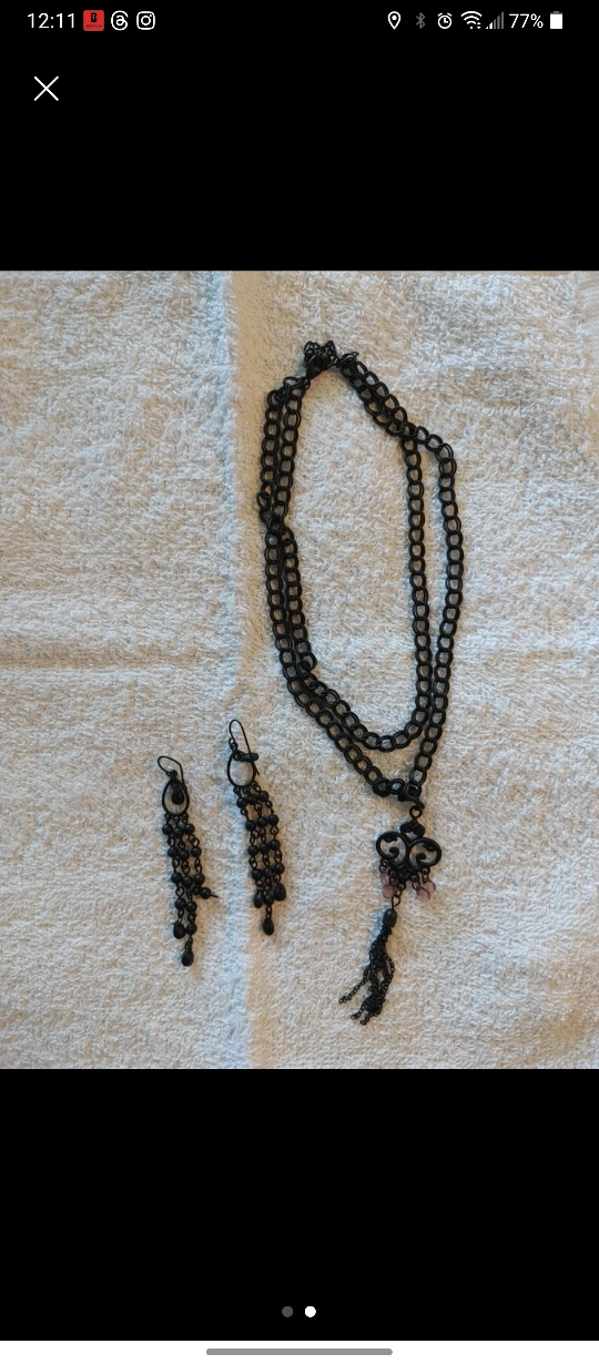 Costume jewelry consisting mostly of necklaces, with a sun broach. Goth and Steampunk inspired. Most are vintage pieces that I actually wore in high school in the 90s.