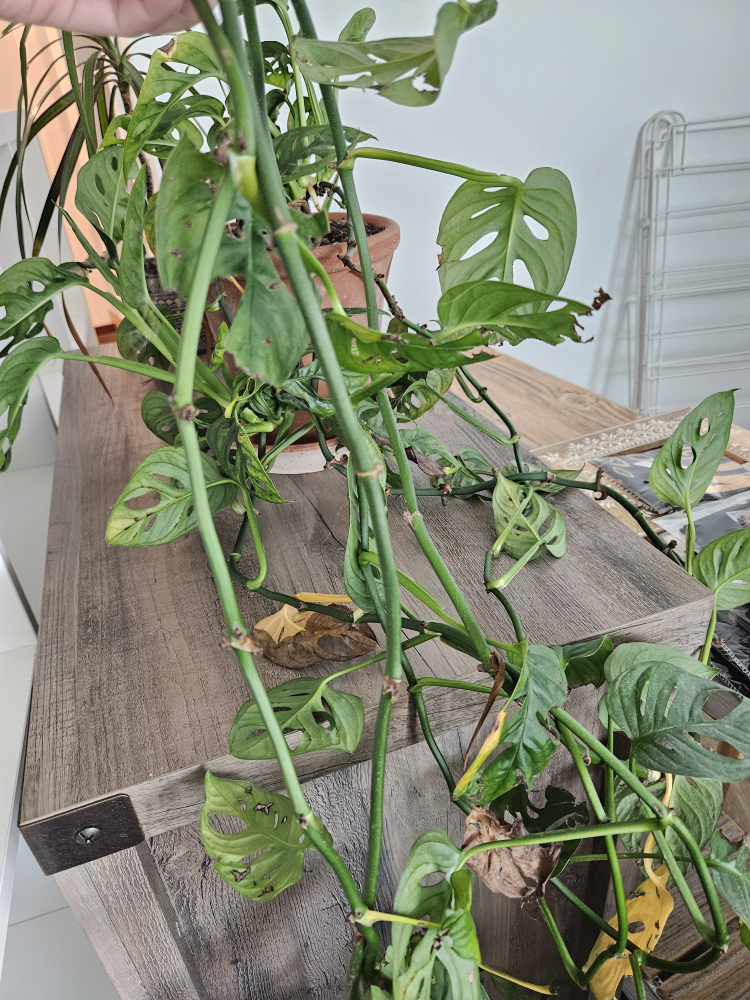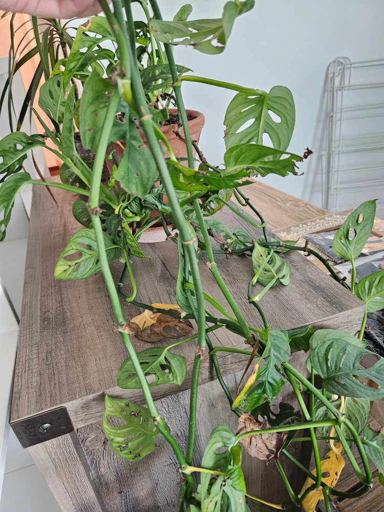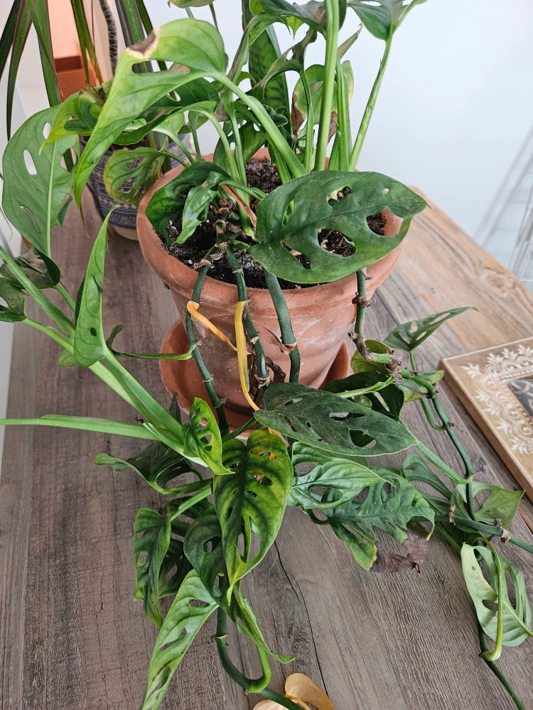 Large Swiss Cheese plant have many vines... damaged from cats but still in great condition and comes with luxury Italian clay pot