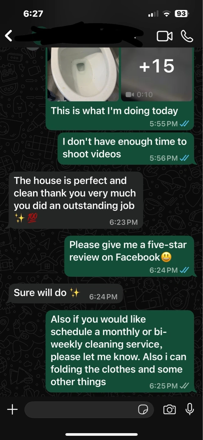 Home cleaning service available for your household needs. This service ensures a thorough clean for kitchens, bathrooms, and general living spaces. We offer flexible scheduling for weekly bi-weekly monthly services.