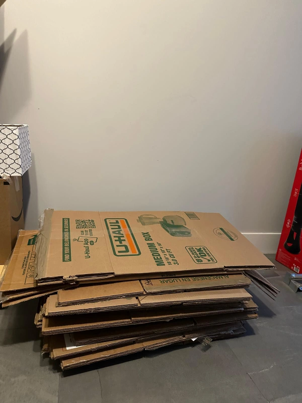 Assorted cardboard boxes in very good condition available. 2 big closet moving boxes each at 3$ and 19 medium size uhaul boxes at 1$ each are available. Individual items are not sold. Everything must go