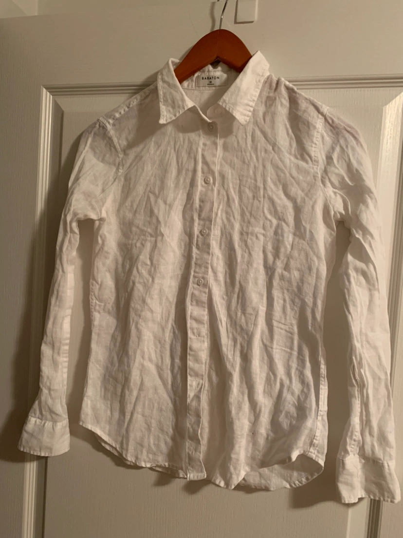 Buy & SellBabaton White Linen ShirtBabaton White Linen Shirt$45White linen button down shirt with long sleeves. Size XS. Made in China.ConditionLike newSizeSmallBrandOritzia WHERE TO MEETCheck LocationView MapSELLERMojanPleasant View80 reviews0 chats·0 favorites·17 views