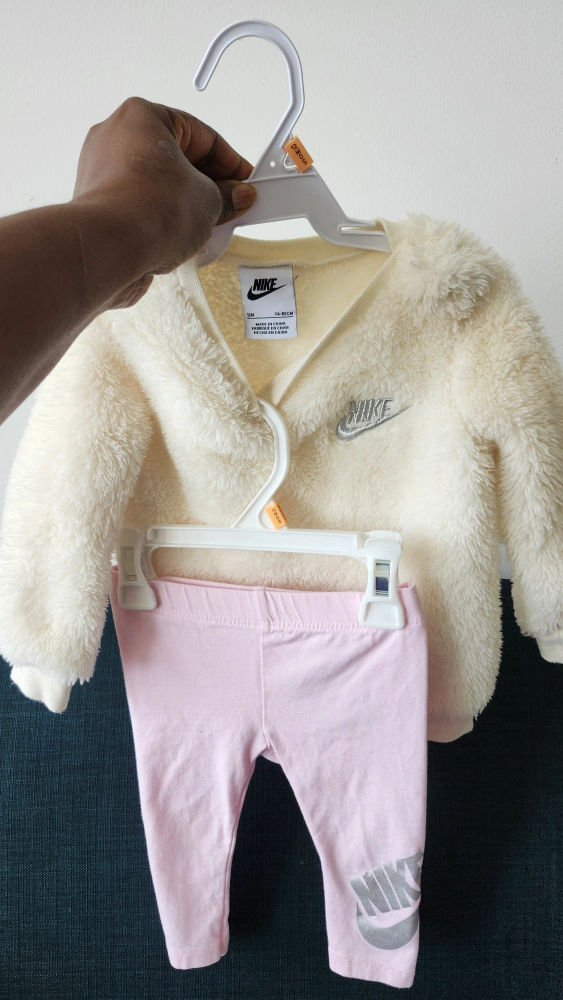 Buy & SellNike Baby OutfitNike Baby Outfit$5A baby girl's 2-piece outfit, a cream fuzzy sweater with a silver Nike logo, and pink leggings with a silver Nike logo.ConditionLike newAge1-2 years1 chats·3 favorites·30 viewsSELLERverifiedTeresaHenry Farm56250 reviewsWHERE TO MEETFreshCo Don Mills & Helen Lu