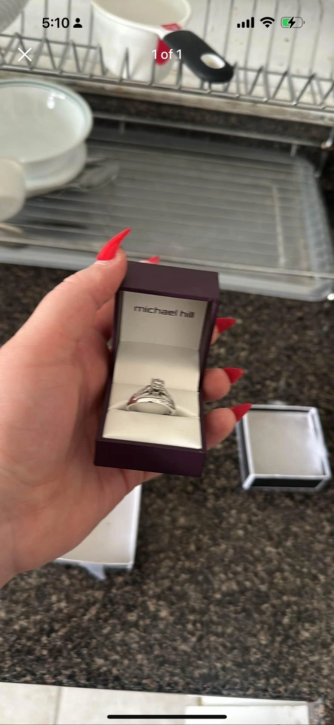 This ring is in its original box. Contact me 6479249213 my email is dearamanda175@gmail.com cash only it is $1,000dollars for the rings