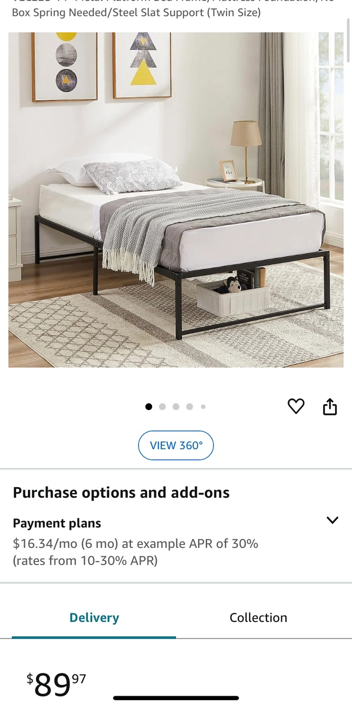 Twin size metal bed frame, no box spring required.
