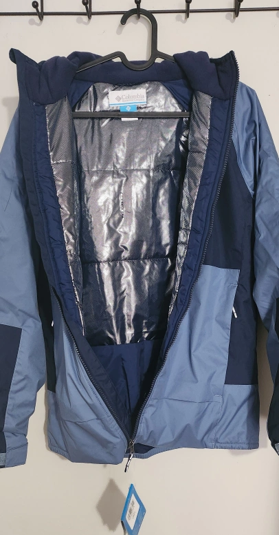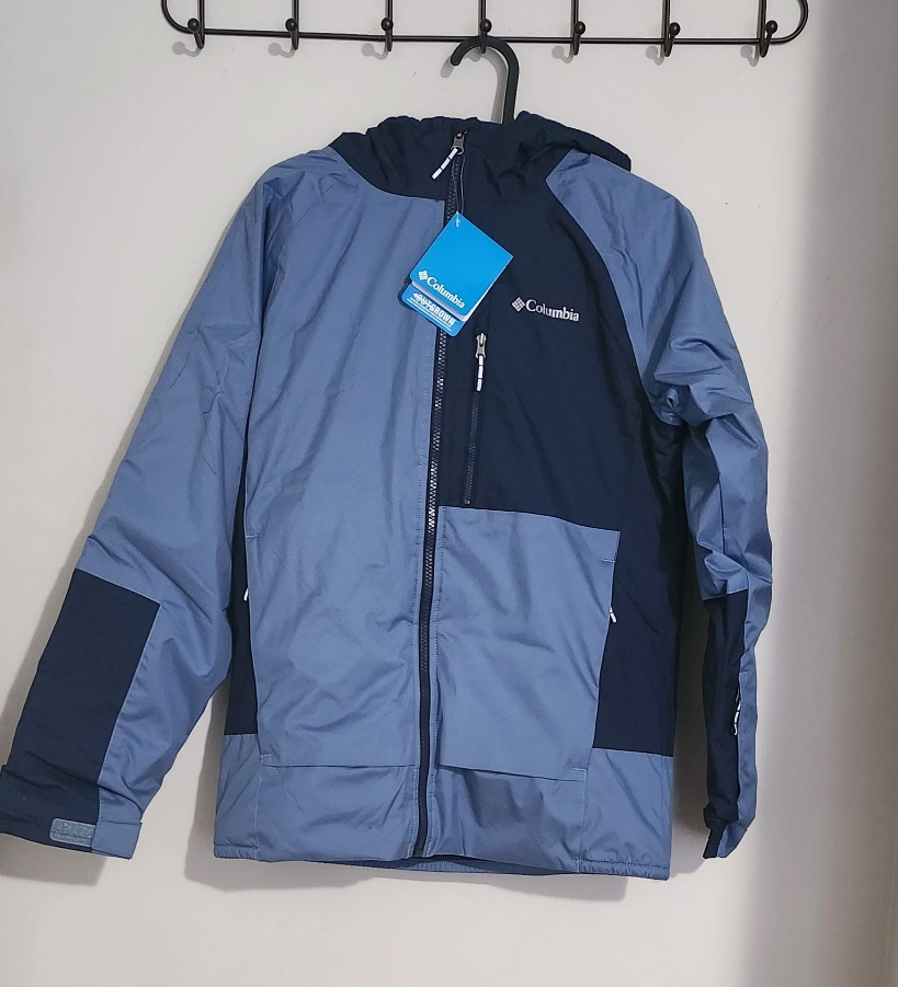 New Boys Columbia jacket. Size L. Blue color. Water resistant. Includes a hood. Great for cold weather. Zipper closure with zippered pockets.