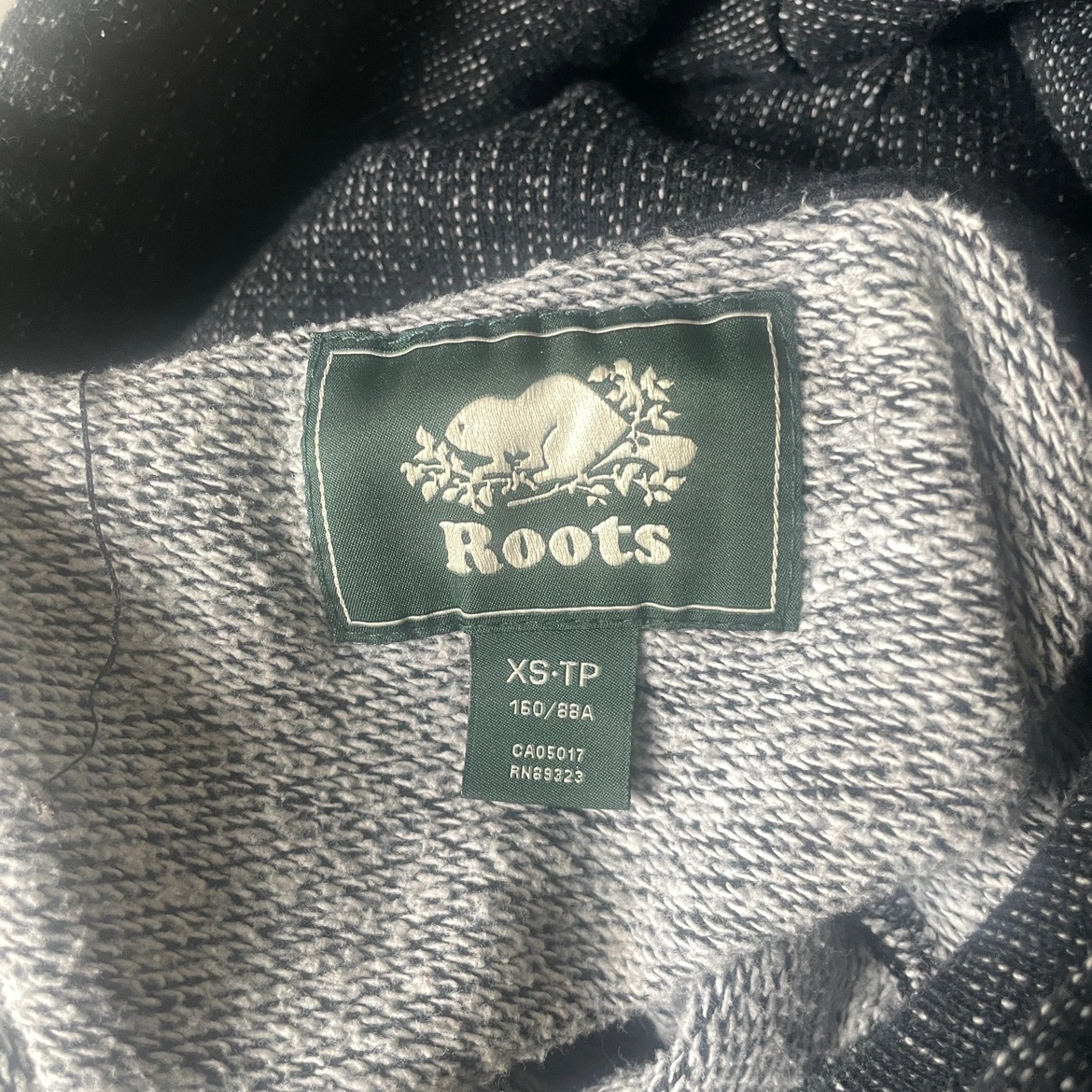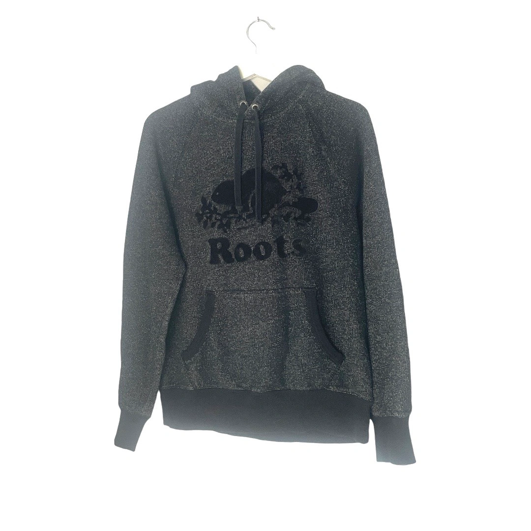 Roots Logo Kanga Hoodie Sweatshirt Size XS in Black Pepper