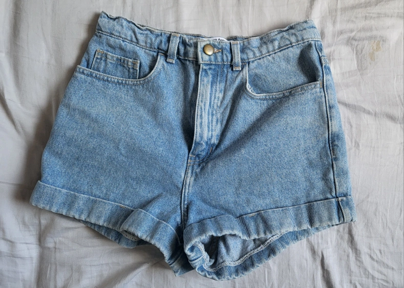 1000+High waisted, light wash denim shorts with cuffed hems. Made in the USA. Located in downtown Toronto ( Yonge/Sherbourne and Bloor and Sherbourne and Wellesley) Cash or etransfer is fine.