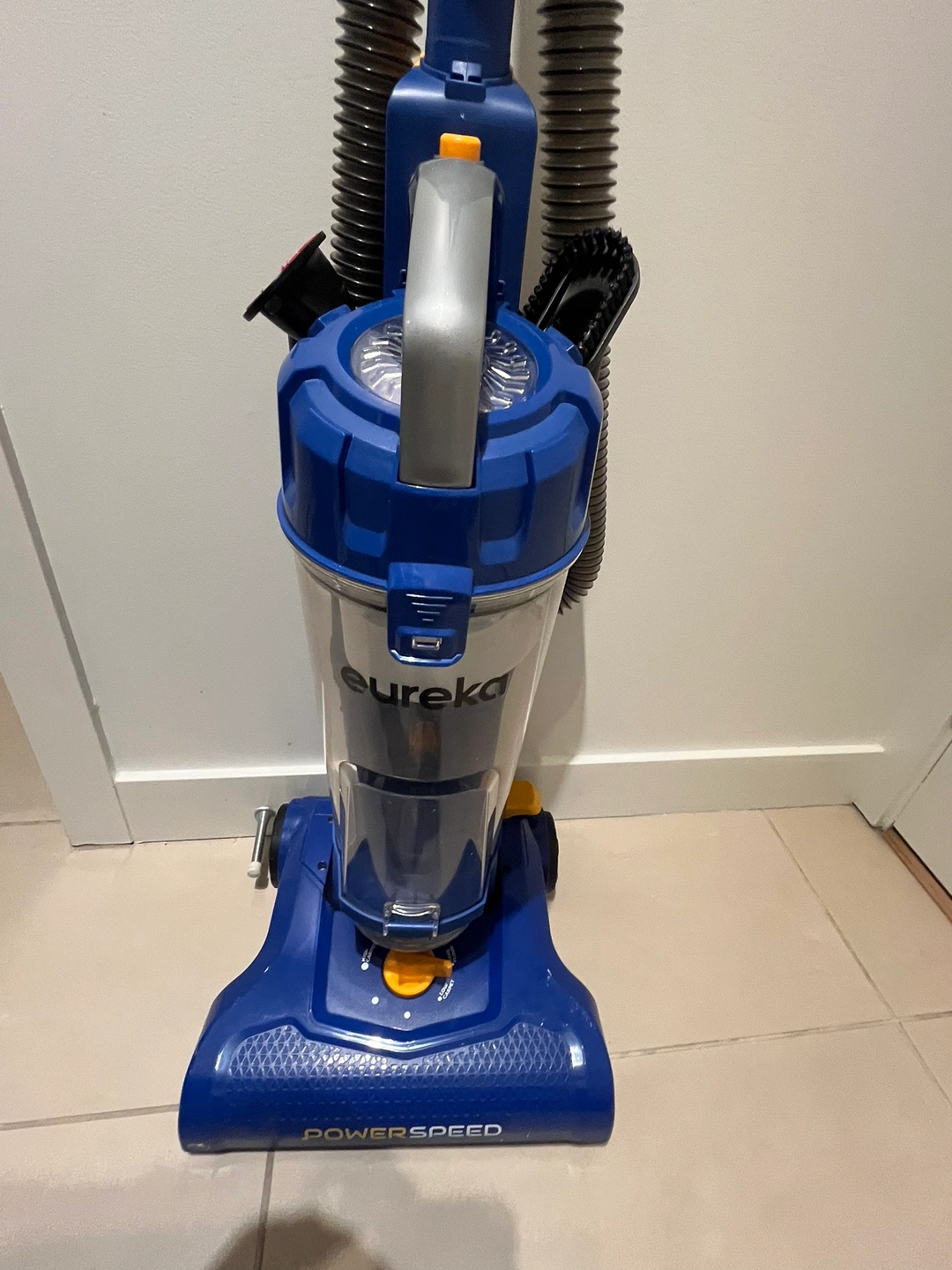 55Used minimally for one year. Great for carpet and hardwood floors with adjustable settings. Combined households so no need for two vacuums which is why we’re selling. Multiple accessories all included and attached as shown in photos which are - quick release handle - dusting brush - upholstery tool - 7-inch long crevice tool Hose length is 25.2 inches Retails for $130. Has been deep cleaned and sanitized.